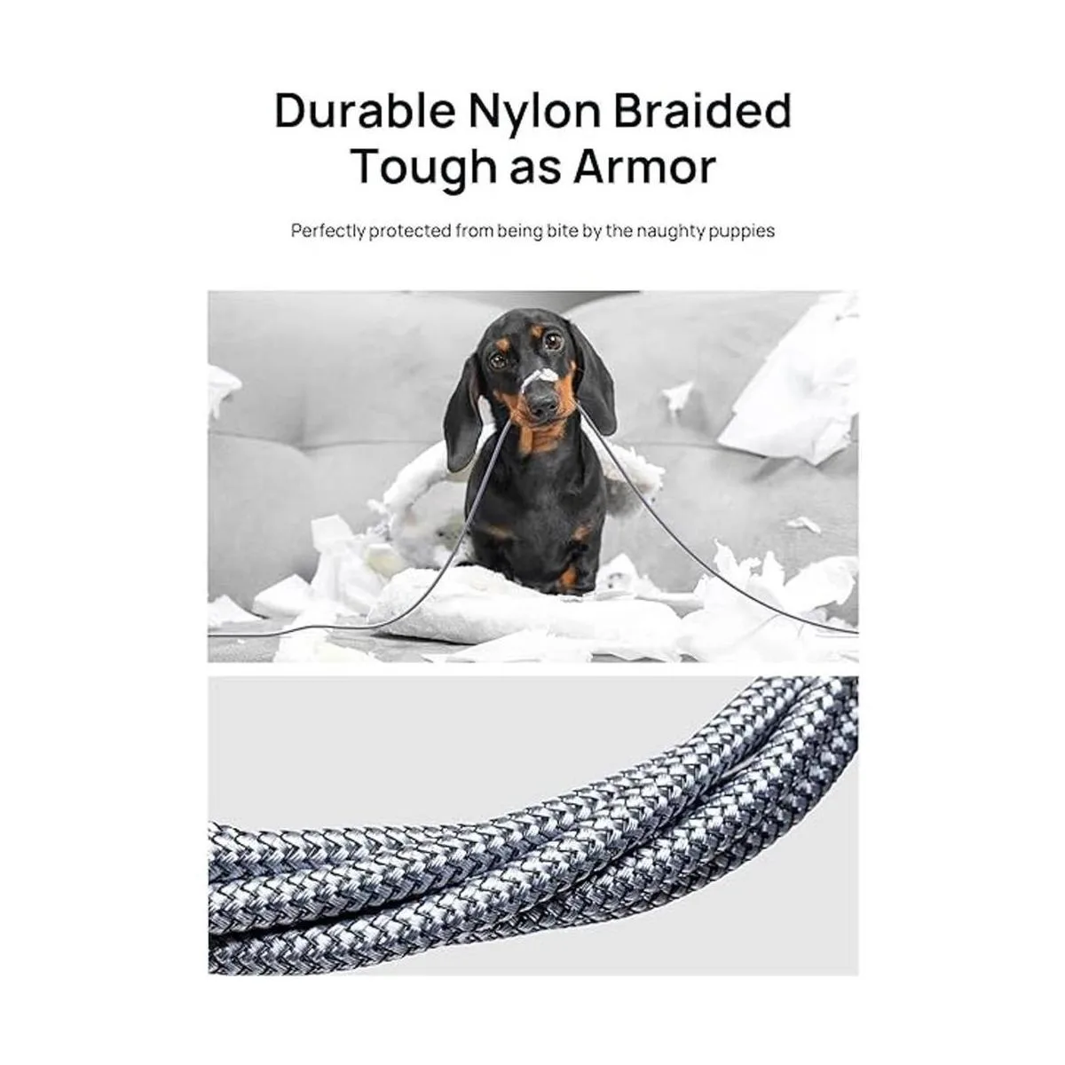 Material de alta calidad: el tejido trenzado de nailon más flexible, potente y duradero hace que la fuerza de tracción aumente un 200. Diseño especial de alivio de tensión, ha pasado más de 10000 pruebas de flexión. La carcasa de aluminio de alta calidad hace que el conector macho no se rompa fácilmente.