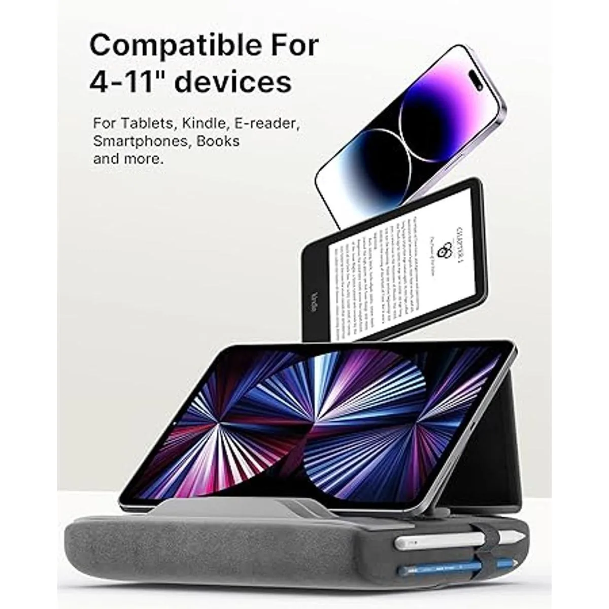 JSAUX Soporte de almohada para tableta, soporte de tableta para regazo, cama y escritorio compatible con iPad Pro 11 10.5 9.7 10.2 Air Mini, Kindle, tabletas, teléfonos, lector electrónico, libros y más dispositivos de 4 a 11 pulgadas, color gris