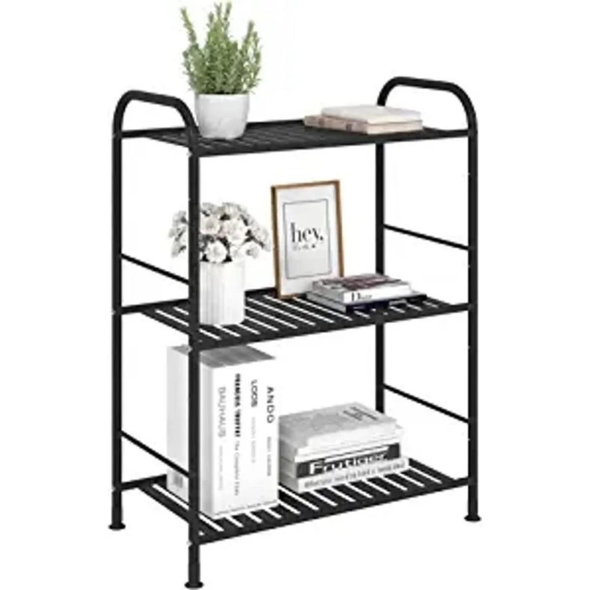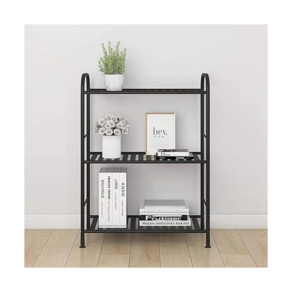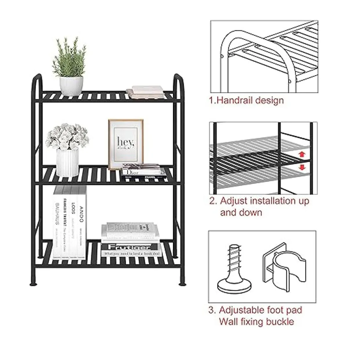 JSB Estantería ajustable de 3 niveles, organizador de almacenamiento resistente, estante esquinero de metal para cocina, sala de estar, lavandería, despensa y baño negro, 3 niveles