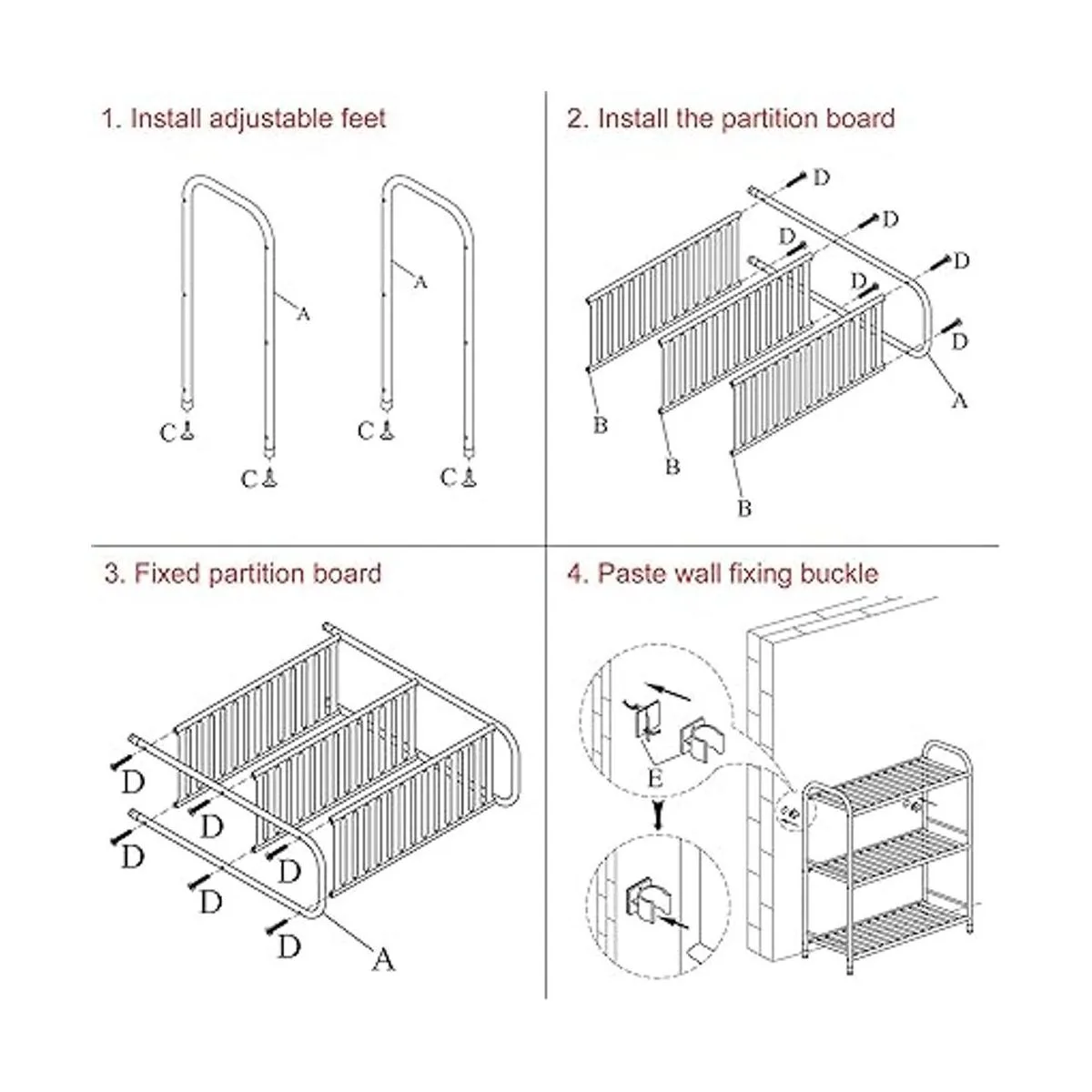 Estantes ajustables: los estantes se pueden ajustar como se muestra en la imagen, puedes ajustar la distancia de los estantes de acuerdo a tus necesidades.