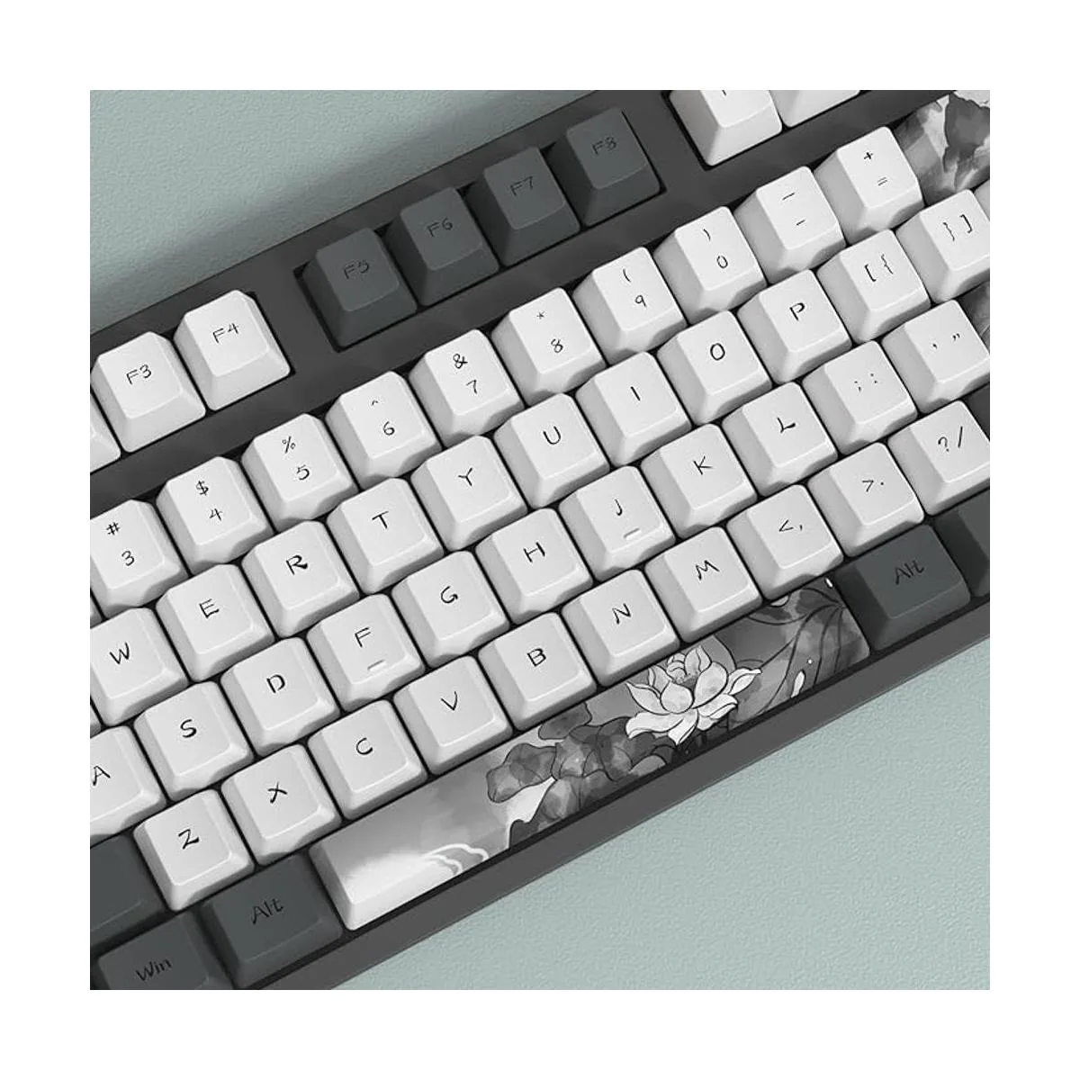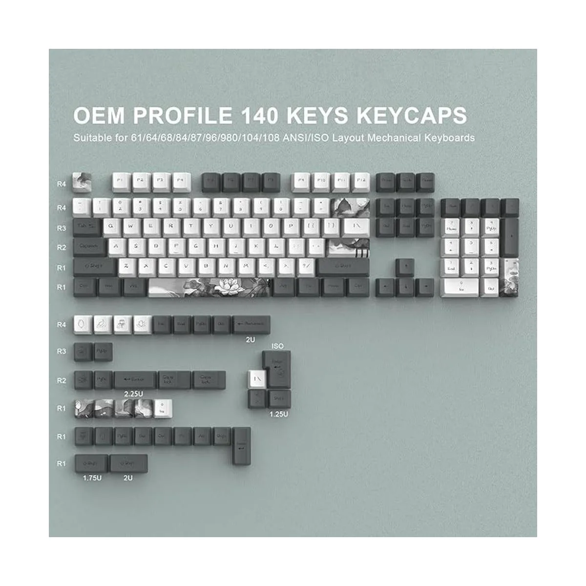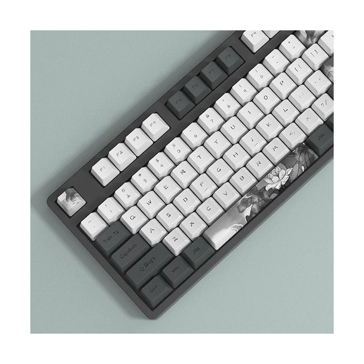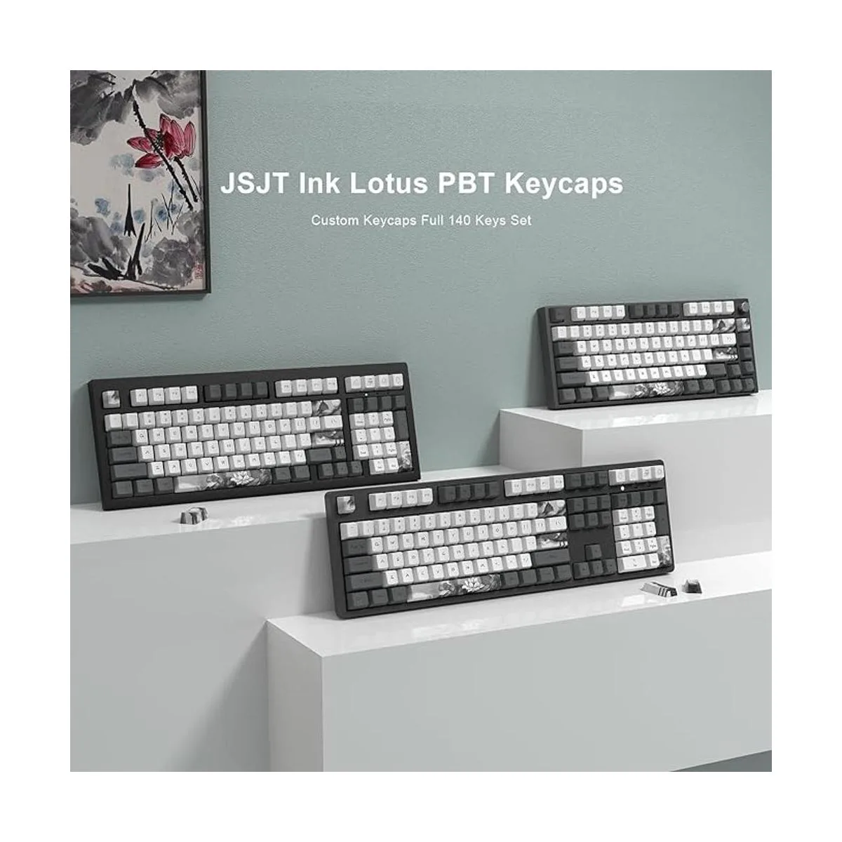 Fácil instalación: 140 teclas temáticas de loto de tinta china, únicas y hermosas, altura OEM de diseño ergonómico, diseñadas para teclados mecánicos retroiluminados/no retroiluminados, fáciles de instalar.