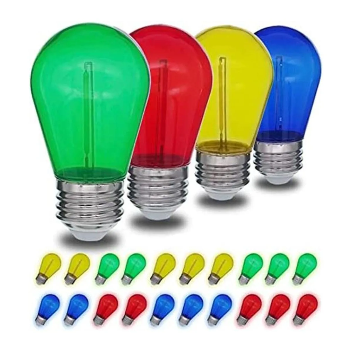 Jslinter Guirnalda de bombillas LED de colores Bombillas S14 de plástico de 1 vatio para interiores y exteriores para reemplazo de luces de Navidad inastillables, base E26 Paquete de 24 RojoAzulAmarilloVerde