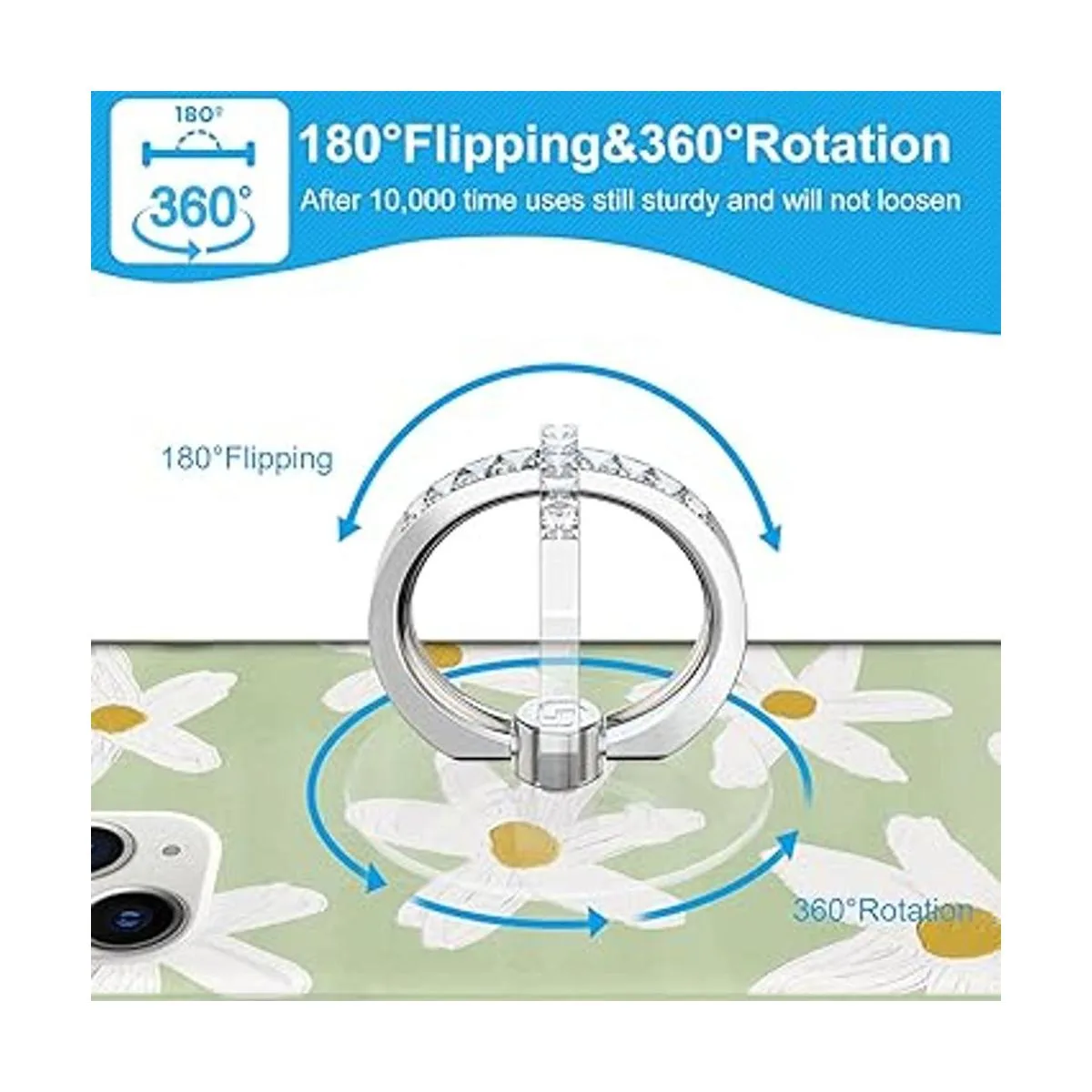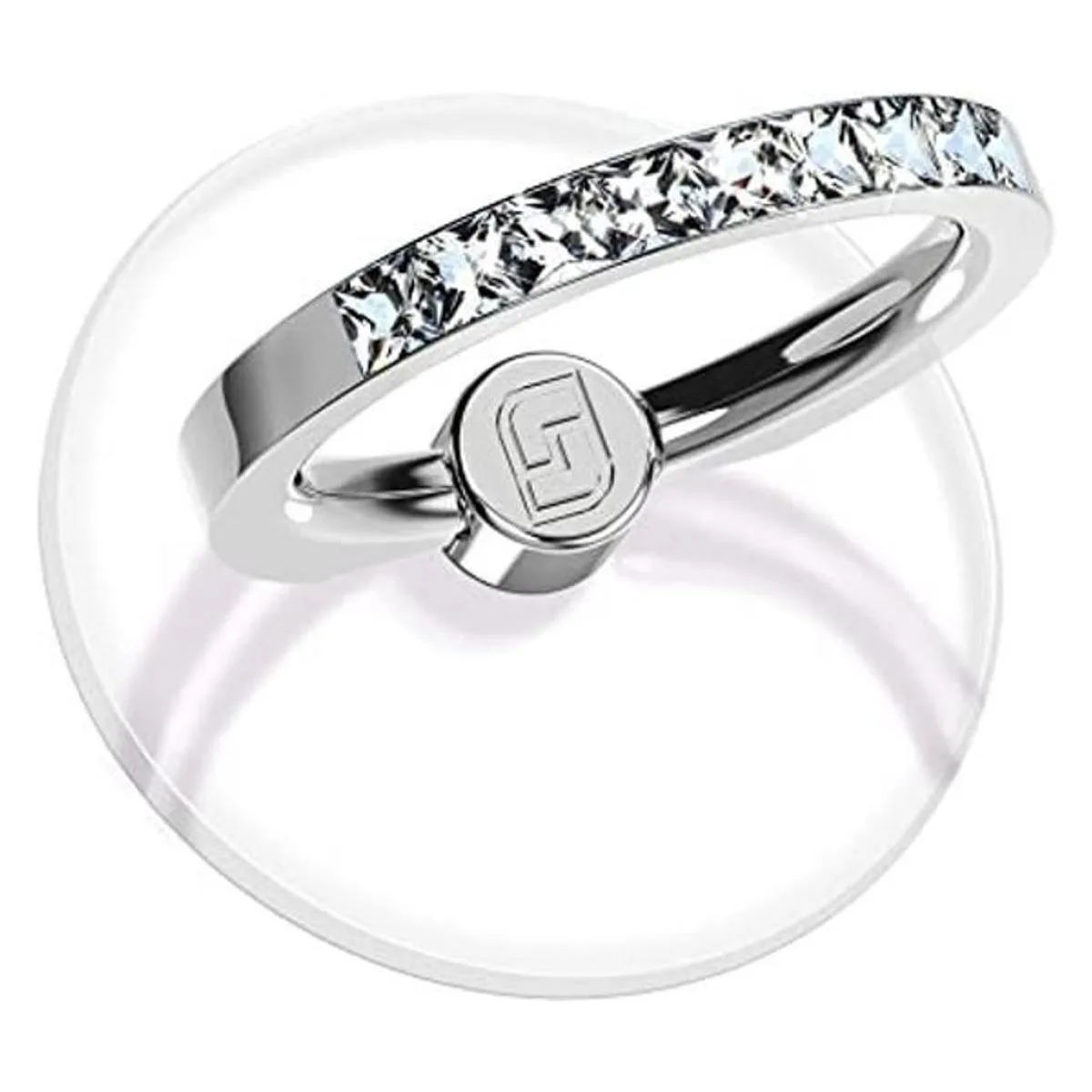 Jsoerpay Soporte de anillo transparente para teléfono celular con diamante, agarre para dedos de rotación de 360 compatible con la mayoría de teléfonos, tabletas y fundas plata