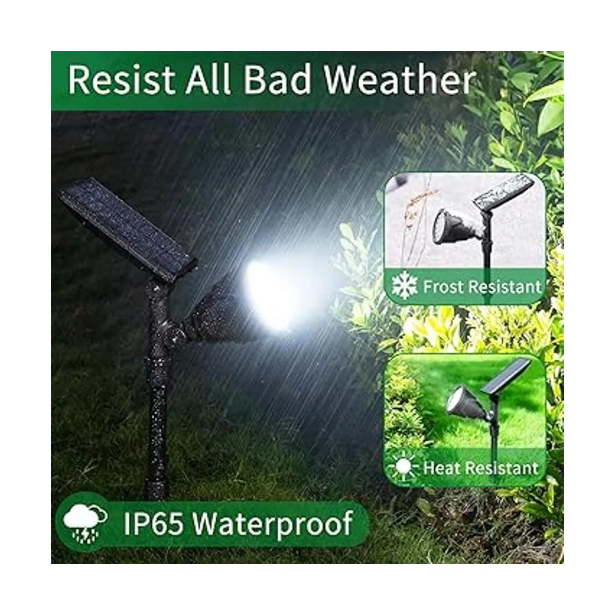 Impermeable IP 65 y excelente durabilidad Los focos solares están hechos de ABS duradero antiultravioleta, material de policarbonato y tecnología impermeable IP67. Son resistentes no solo a la lluvia, sino a todo tipo de clima extremo, como viento o lluvia, nieve, heladas, sol ardiente, lo que fortalece en gran medida la estabilidad de la iluminación exterior y uso a largo plazo, las luces de paisaje iluminan tus lugares durante todo el año.