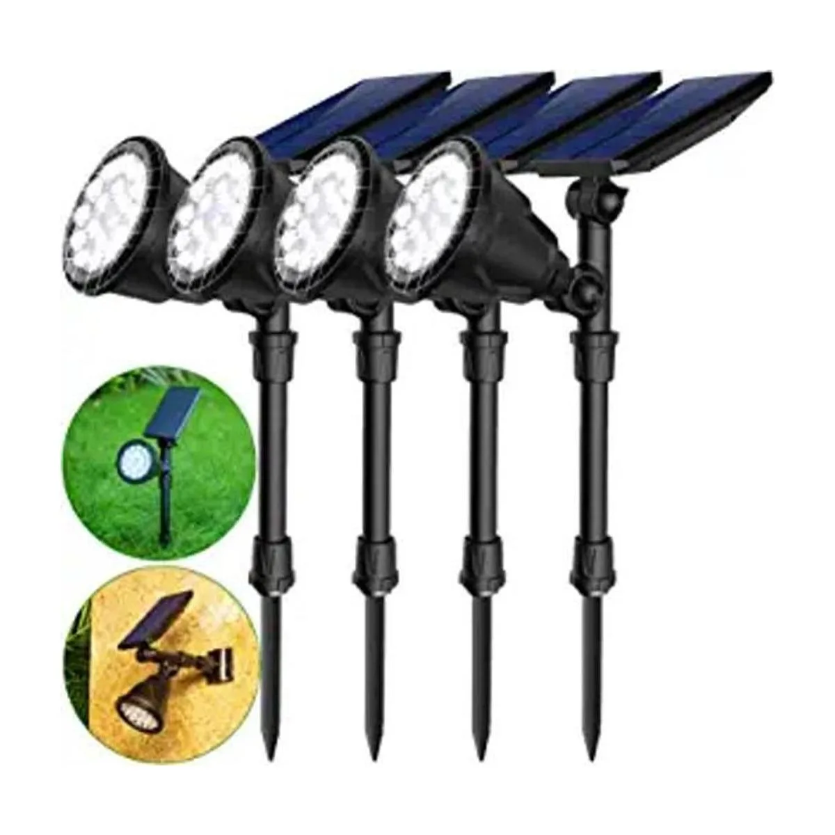 JSOT Focos solares de 600 lúmenes al aire libre para jardín, IP65, impermeables, iluminación de paisaje para pasarela, pared, jardín, patio, camino, entrada, 18 cuentas LED, blanco frío, paquete de 4