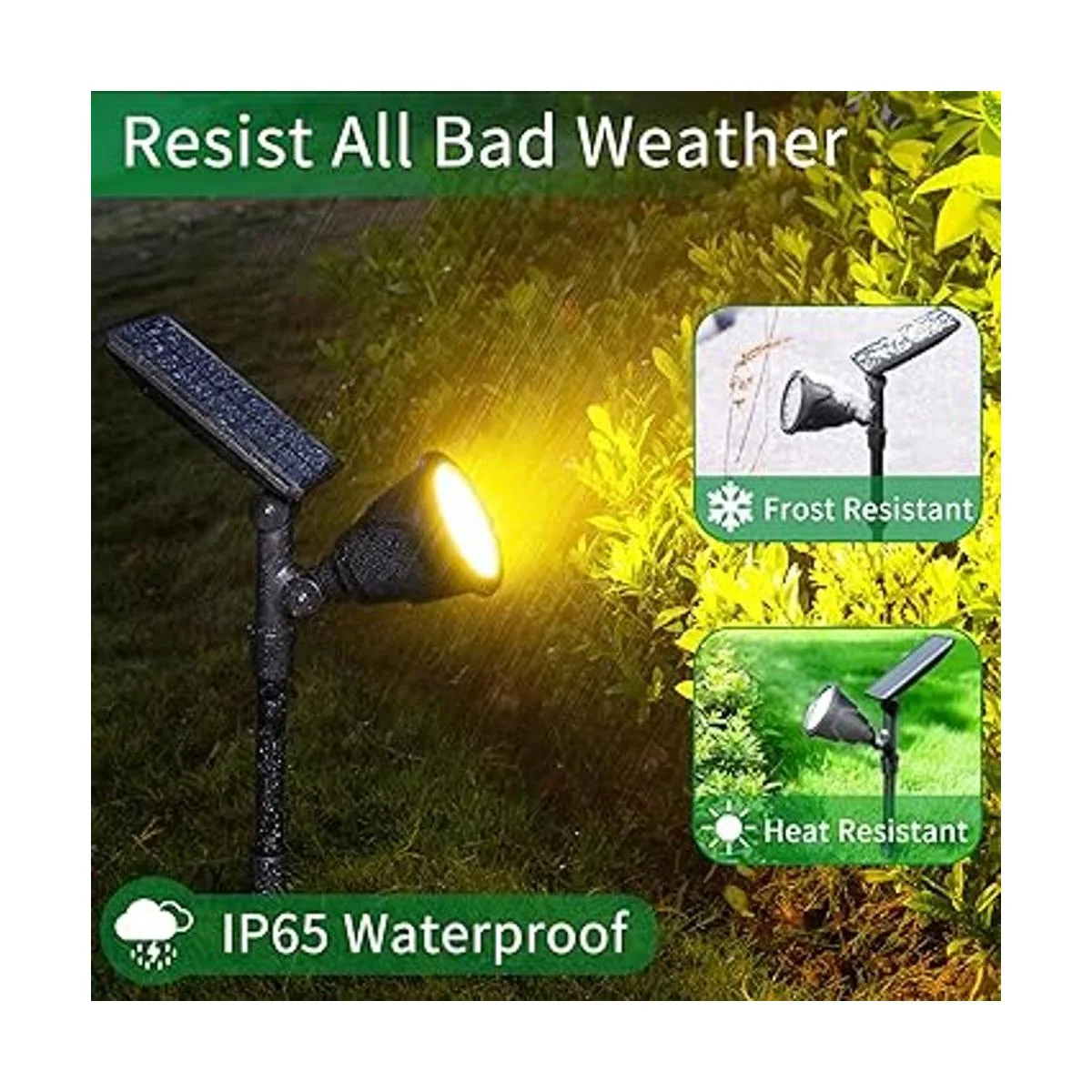 IP65 resistente al agua y excelente durabilidad Las luces solares de jardín están hechas de ABS duradero antiultravioleta, material de policarbonato y tecnología impermeable IP67. Son resistentes no solo a la lluvia, sino a todo tipo de clima extremo, como viento o lluvia, nieve, heladas, sol ardiente, lo que fortalece en gran medida la estabilidad de la iluminación exterior y el uso a largo plazo, las luces de paisaje iluminan tus lugares durante todo el año.