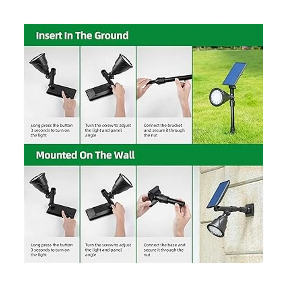 2 opciones de instalación y múltiples usos Hay 2 métodos de instalación fáciles para esta luz solar de entrada. Puedes insertar las luces solares al aire libre en el suelo como una luz de camino o montarlas en la pared como una luz de pared. La instalación inalámbrica puede garantizar la seguridad para ti y tu familia. Estas luces exteriores son capaces de funcionar como luz solar de paisaje para resaltar los árboles, estatuas, carteles, piscina, también óptimas para iluminar tu puerta delantera, conduce camino, camino.