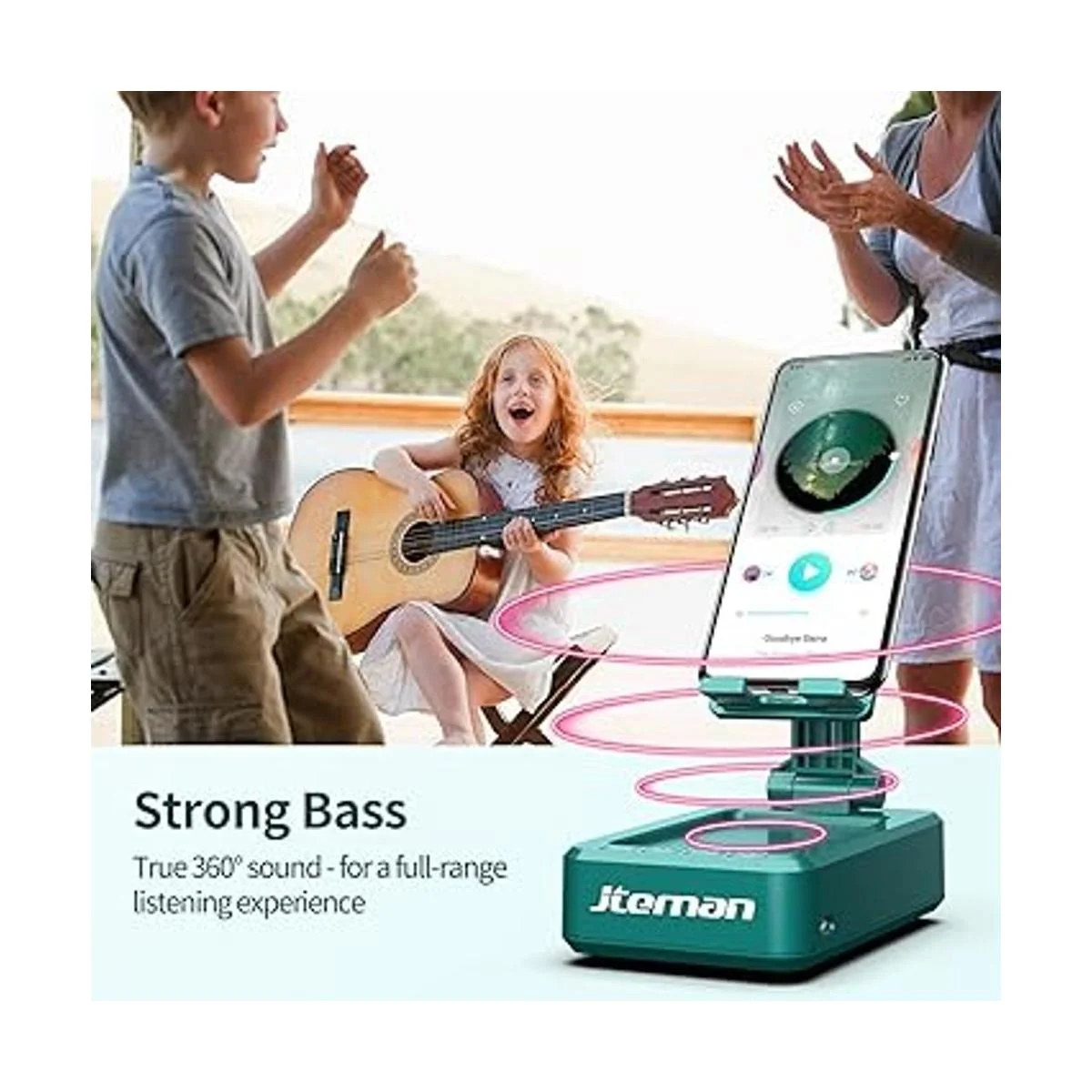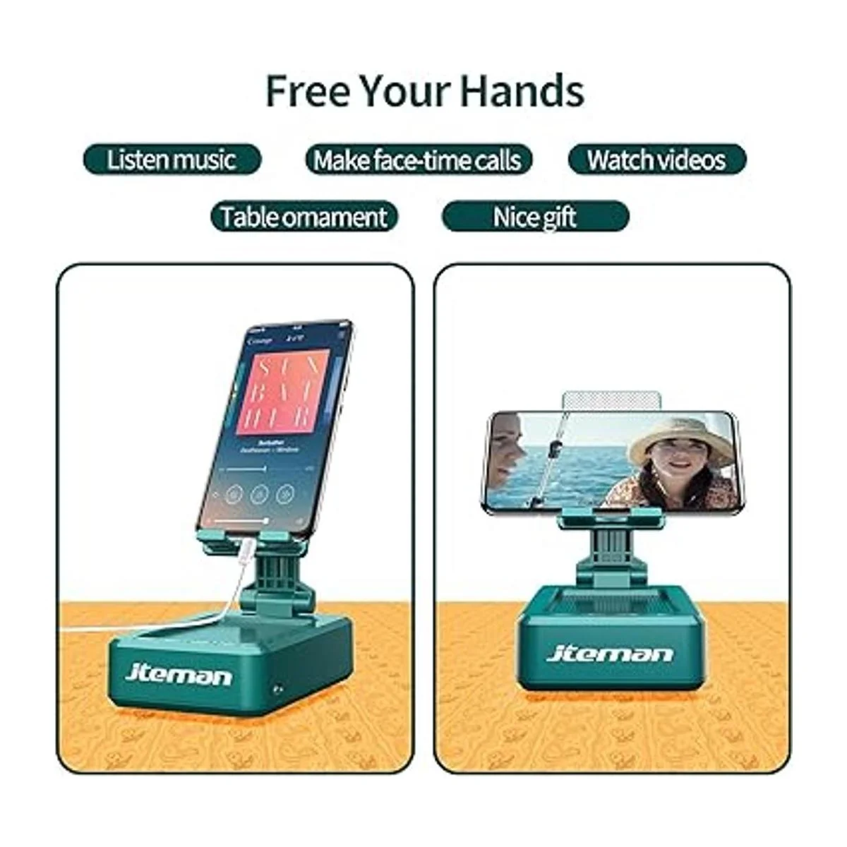 Jteman Soporte para teléfono celular, soporte de teléfono ajustable en ángulo con altavoces Bluetooth inalámbricos, soporte de teléfono con pedestal fuerte para escritorio, sonido HD y altavoz Bluetooth de graves compatible con todos los teléfonos celulares verde