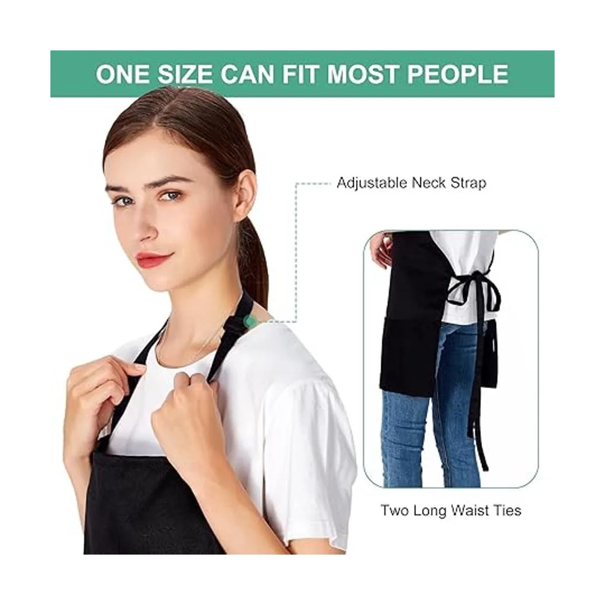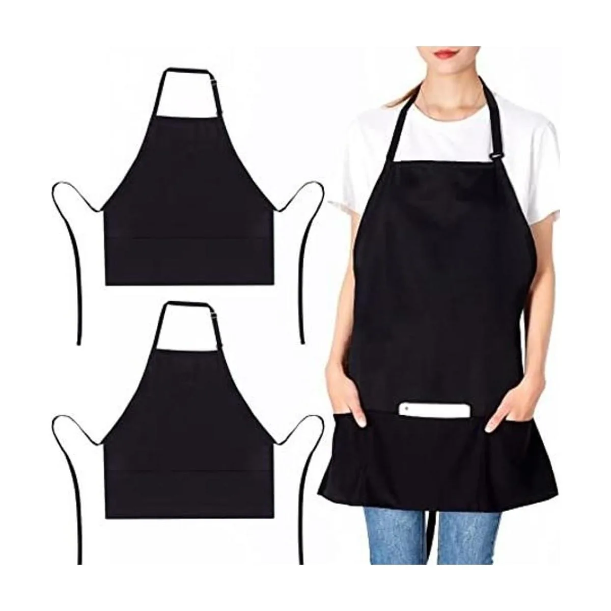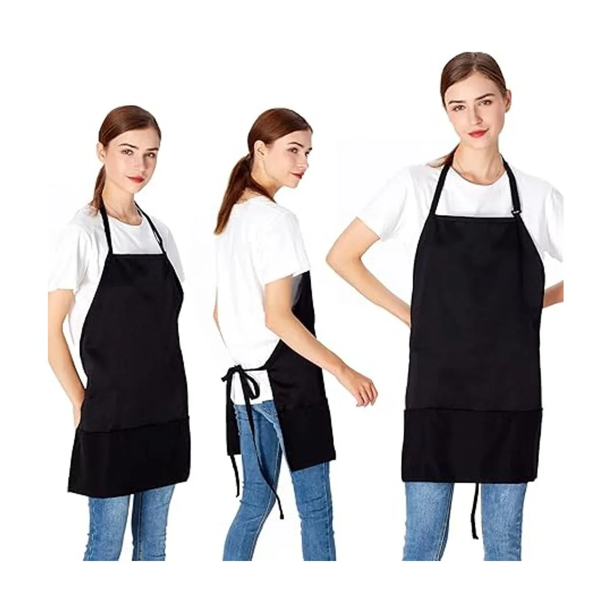 Jubatus Delantal ajustable con babero de 3 bolsillos para cocinero y cocina para mujeres y hombres, color negro