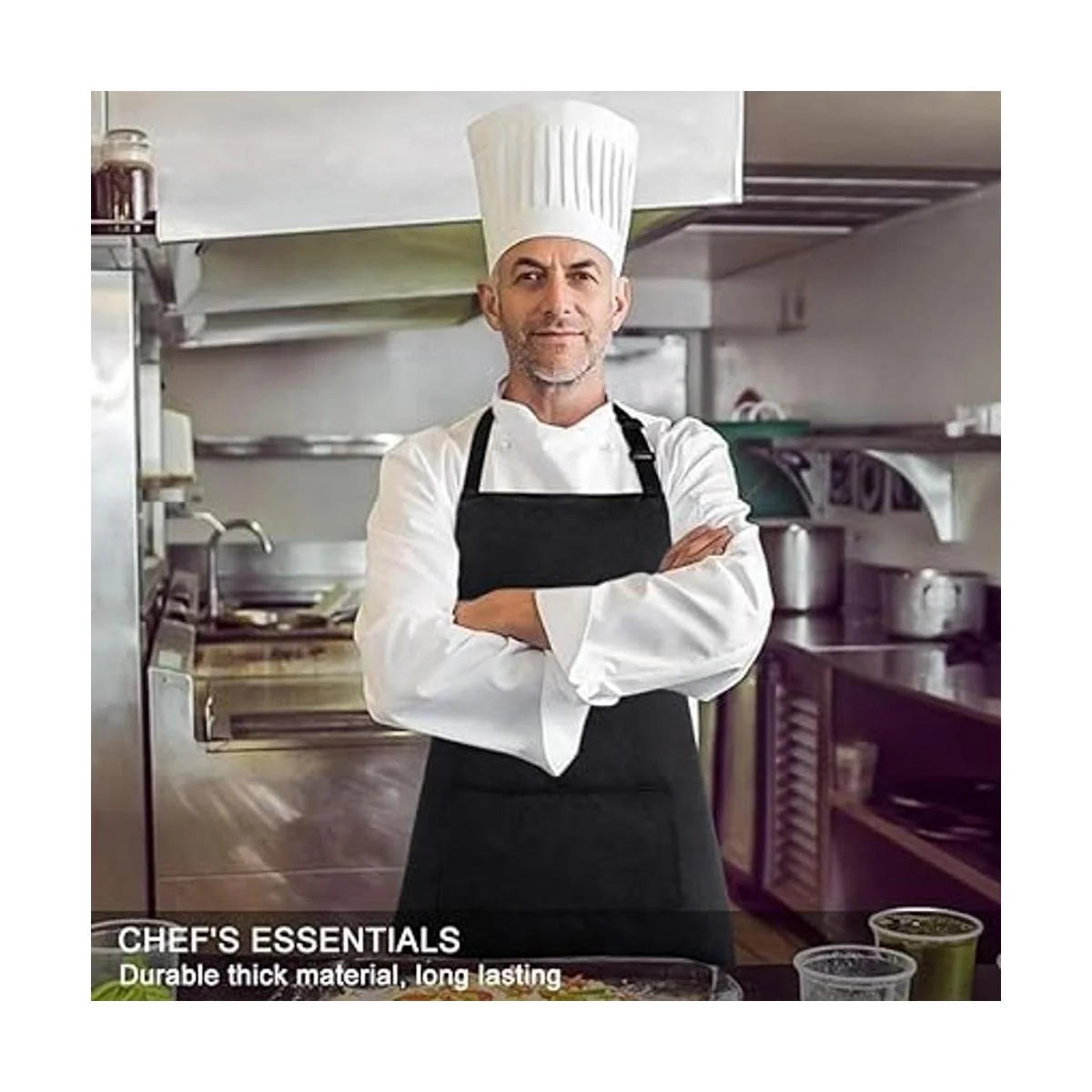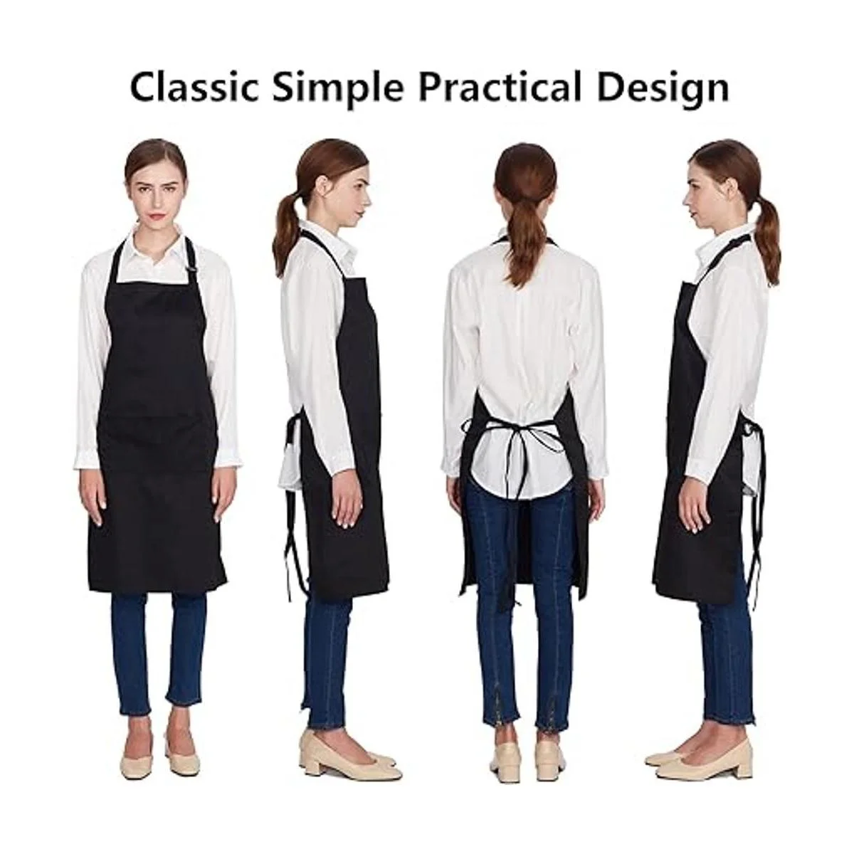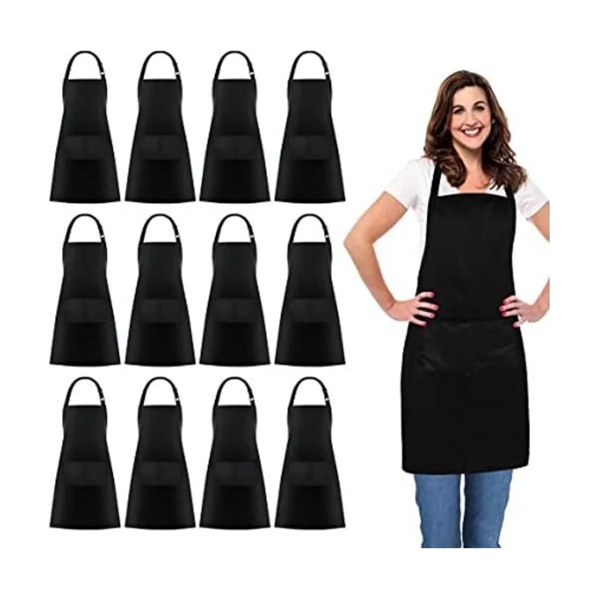 Jubatus Paquete de 12 delantales de 100 algodón a granel con 2 bolsillos, delantal ajustable para cocina, cocinero, cocina, para mujeres y hombres, color negro