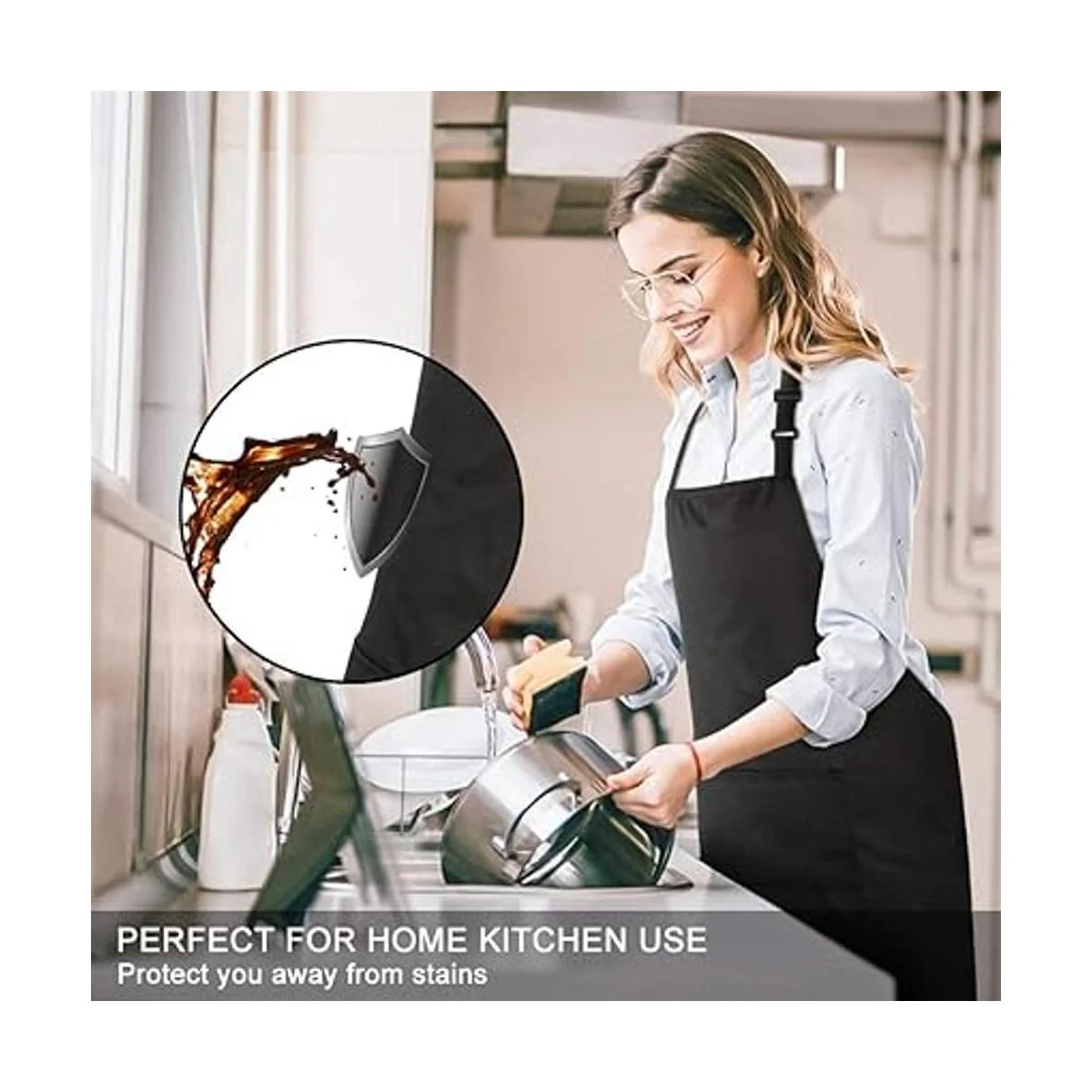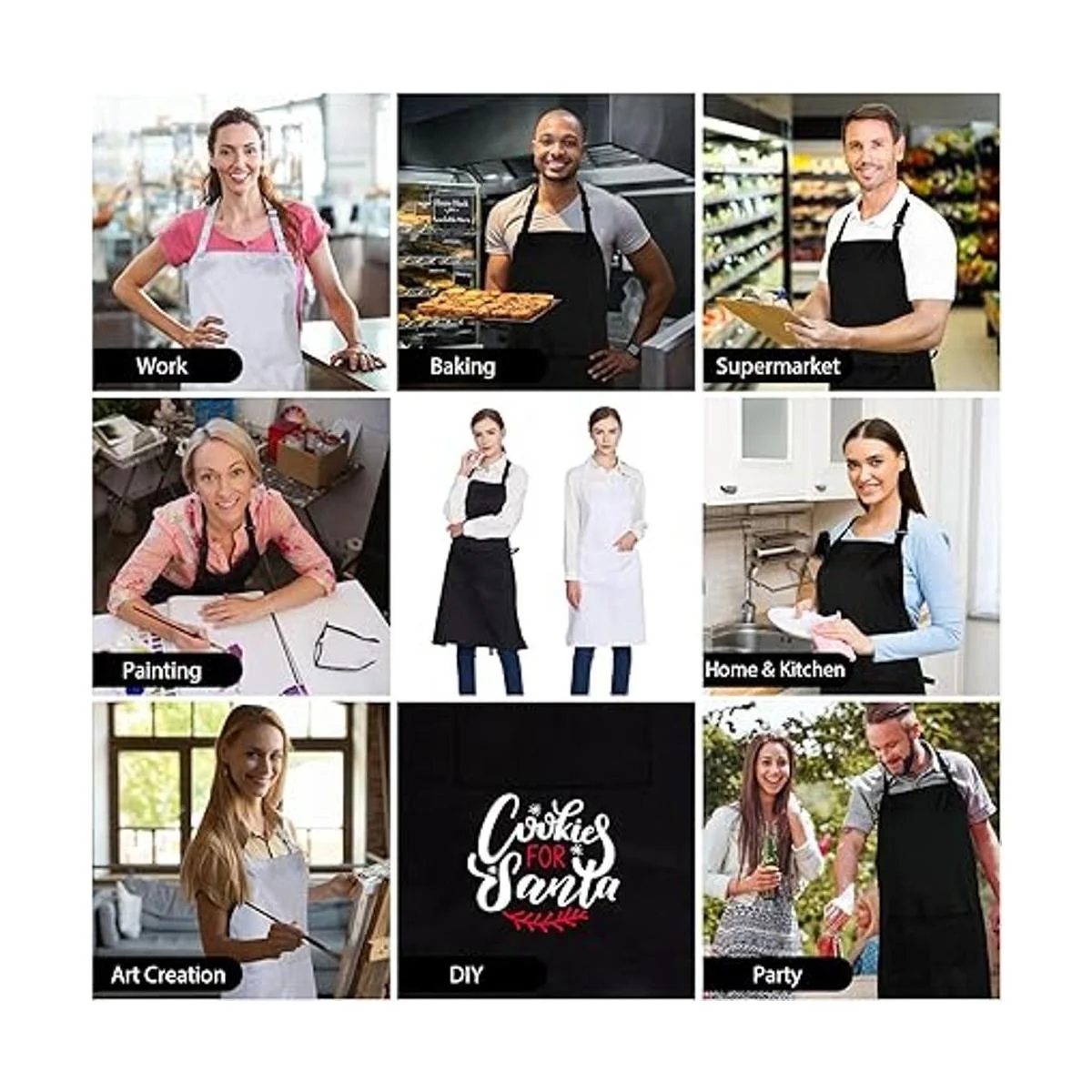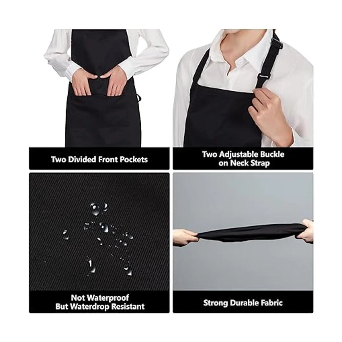 Jubatus Paquete de 12 delantales de 100 algodón a granel con 2 bolsillos, delantal ajustable para cocina, cocinero, cocina, para mujeres y hombres, color negro