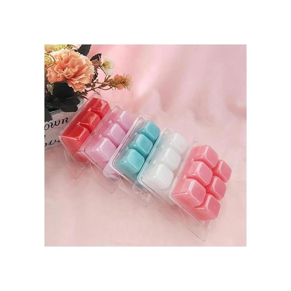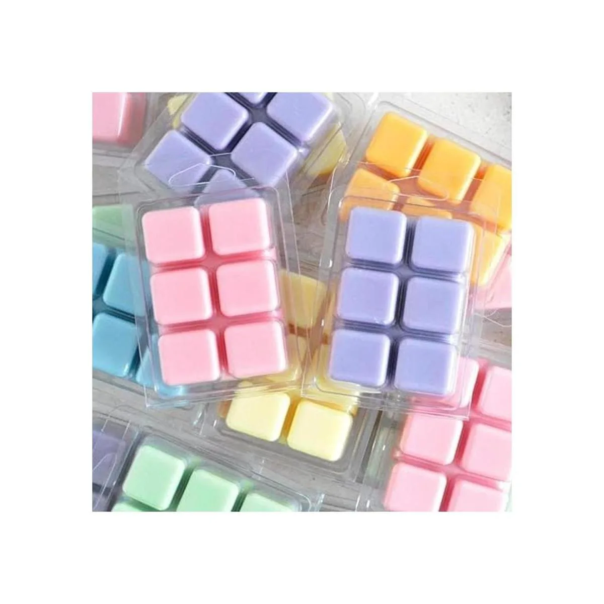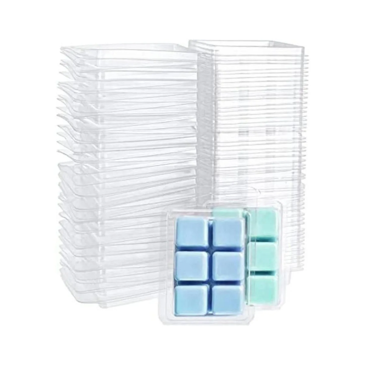 Jucoan Paquete de 100 moldes de cera fundida de plástico, 6 cavidades cuadradas de cera transparente para jabón de cera derretida de bricolaje