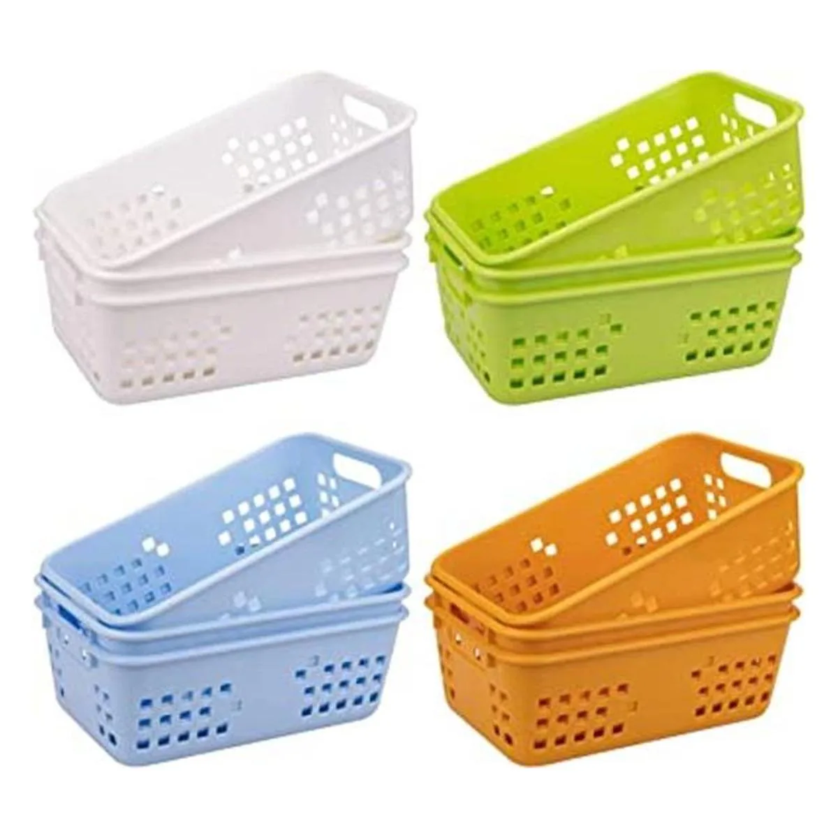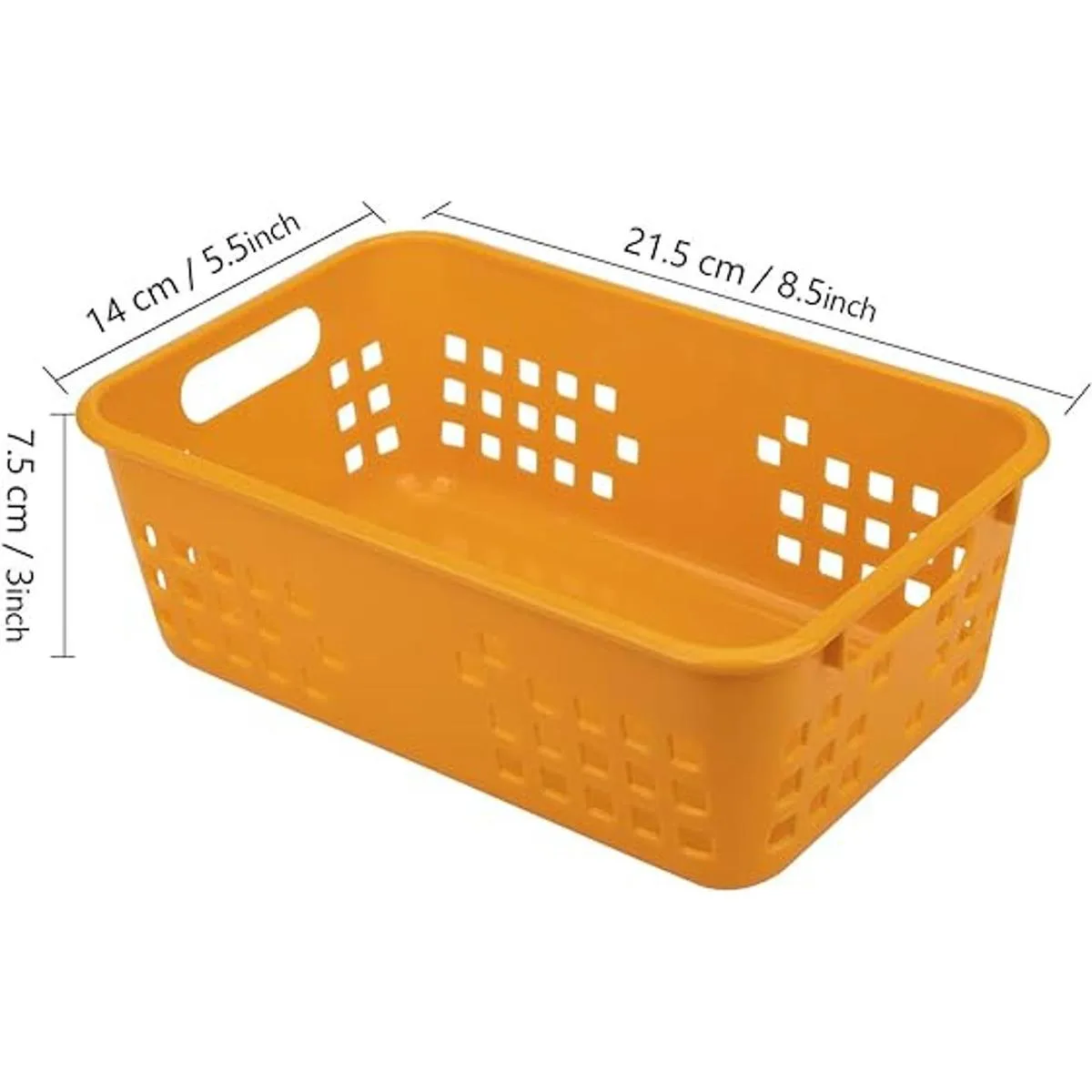 El juego incluye 12 cestas de almacenamiento en 4 colores brillantes: naranja, blanco, verde y azul. Agarra este paquete de pequeños contenedores para estantes y di adiós al desorden y el desorden.
