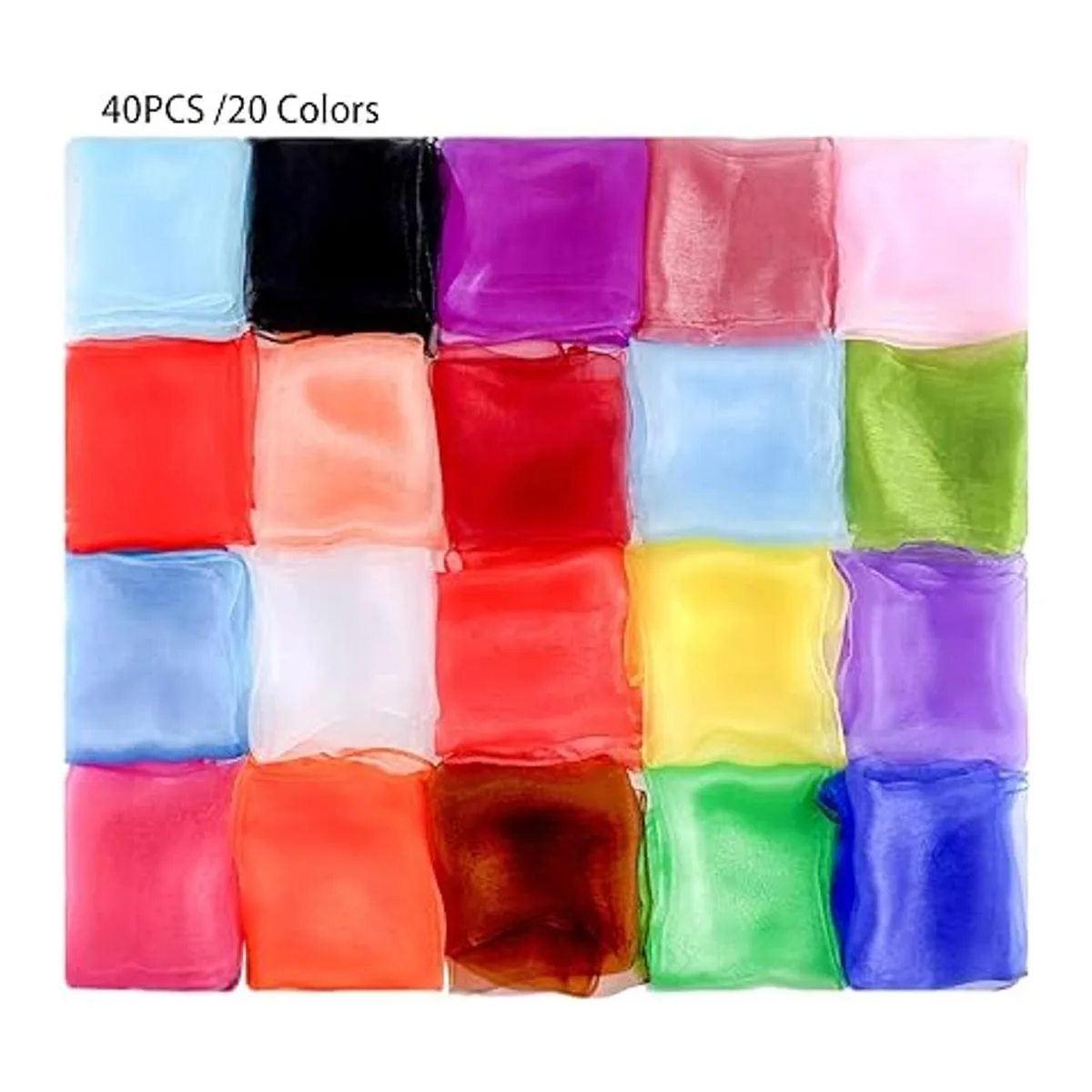 Jucoan Paquete de 40 bufandas de baile, bufanda cuadrada de 20 colores, accesorios de rendimiento de trucos mágicos, bufandas de música de cinta suave de 24 x 24 pulgadas para movimiento de niños