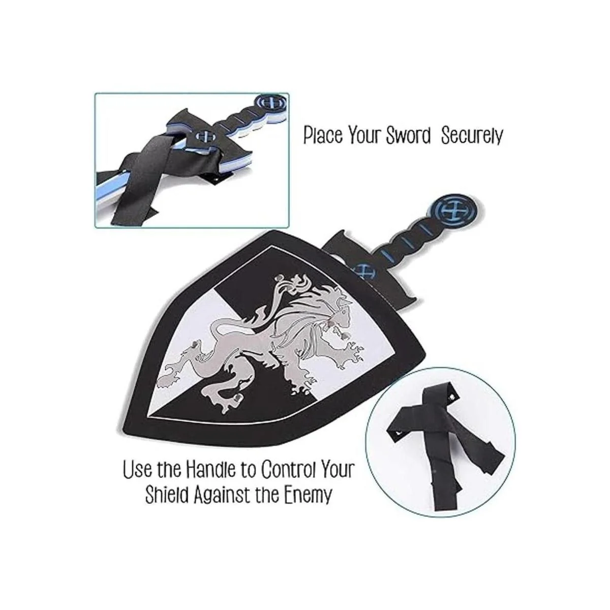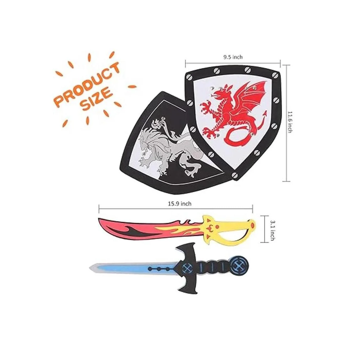 Medidas: espadas 16 pulgadas; escudos 12 pulgadas. Complementa el disfraz de caballero infantil como accesorio principal de arma.