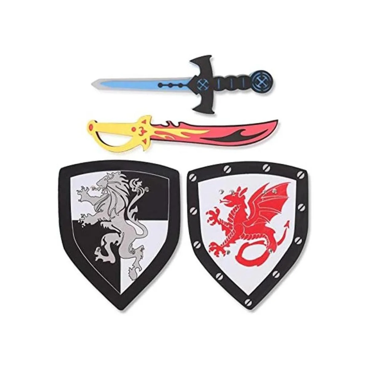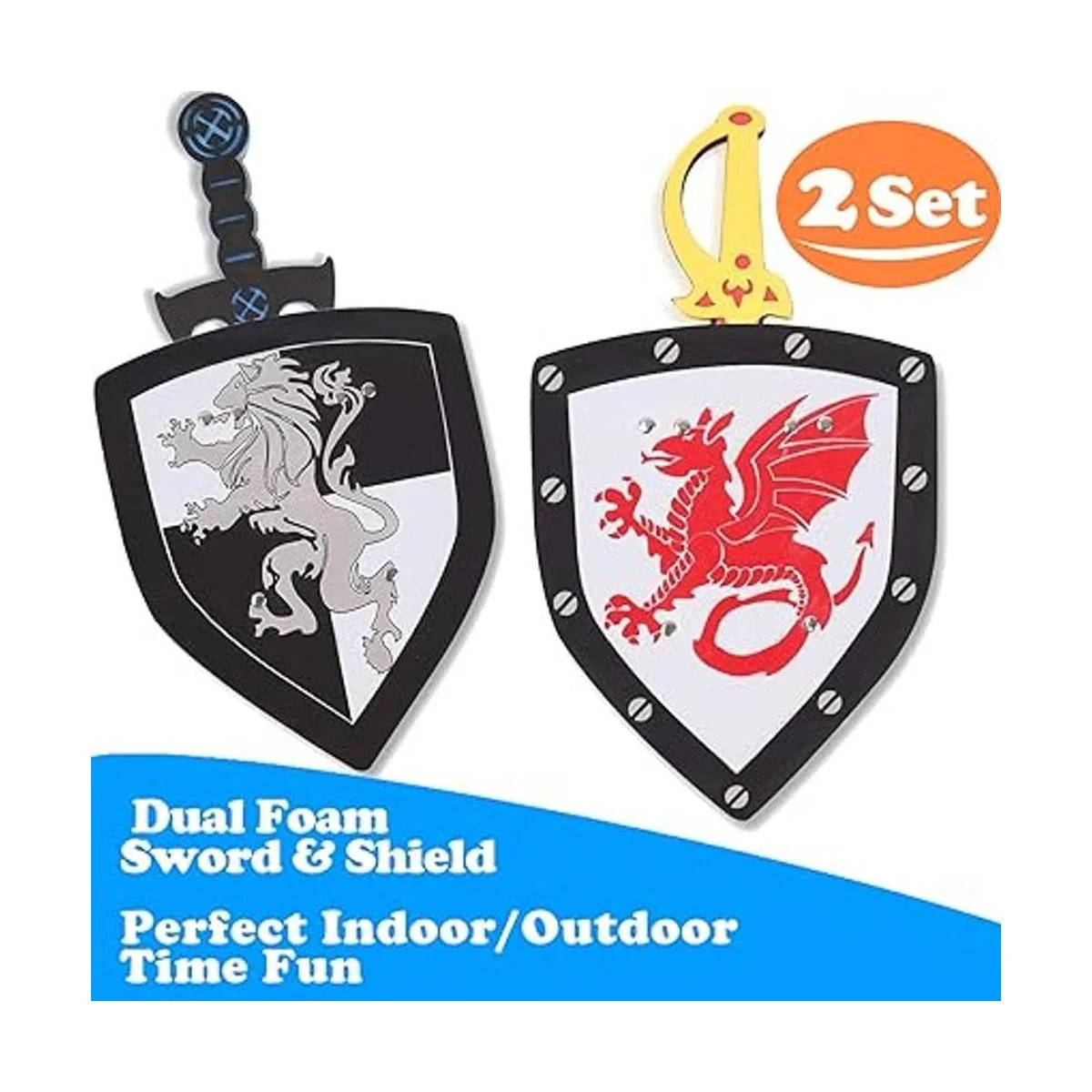 Paquete de 2 espadas y escudos de espuma estilizados para un juego medieval imaginativo.