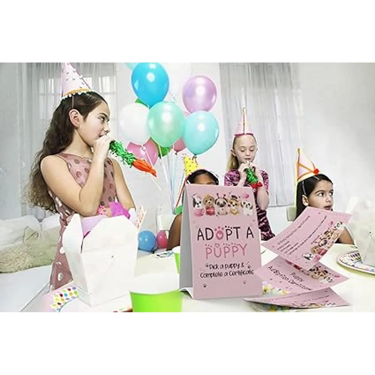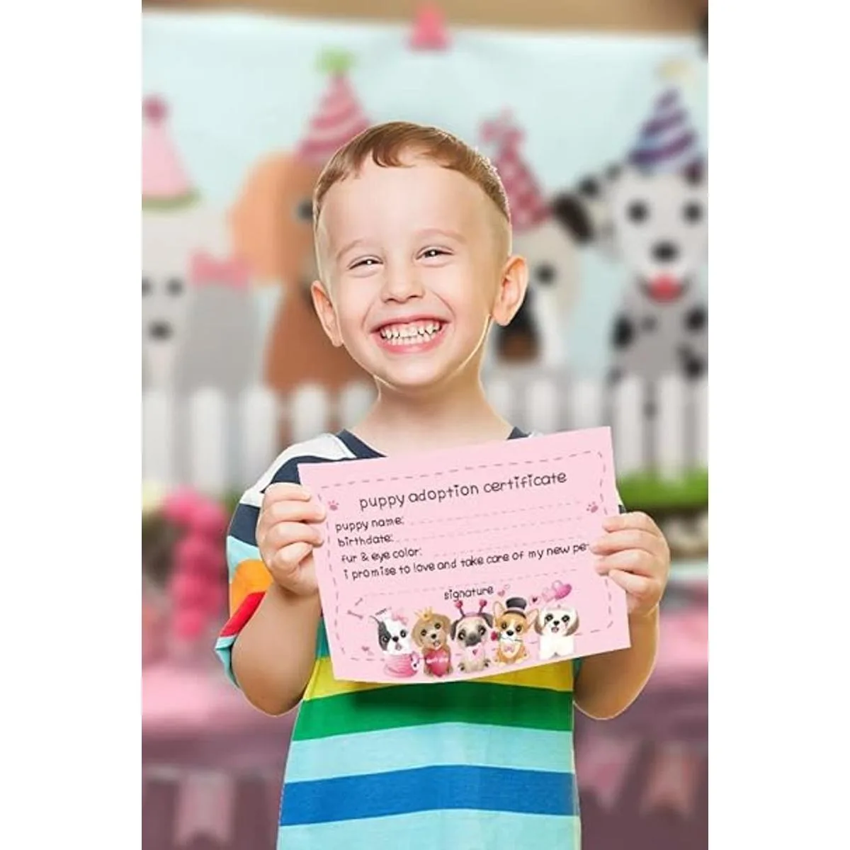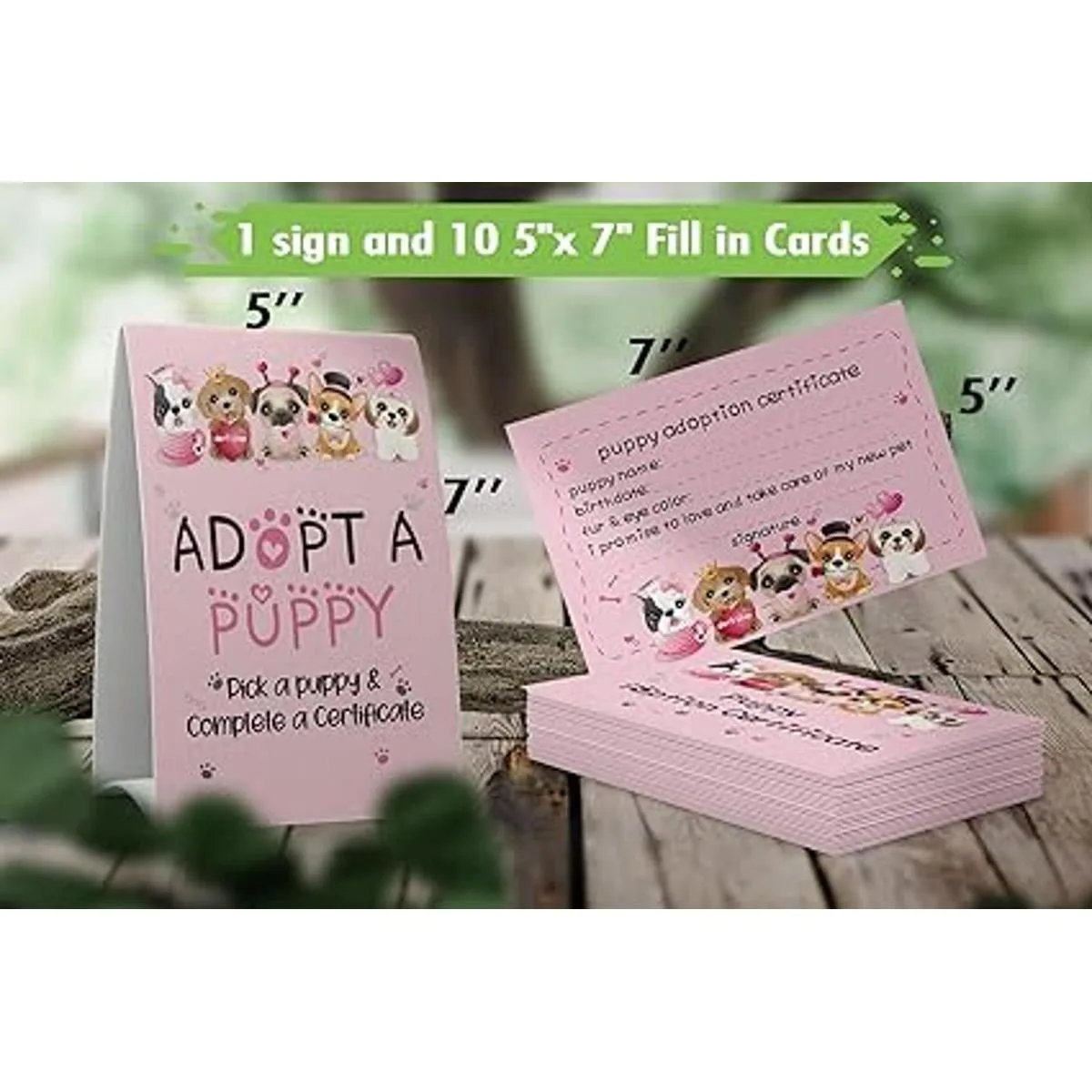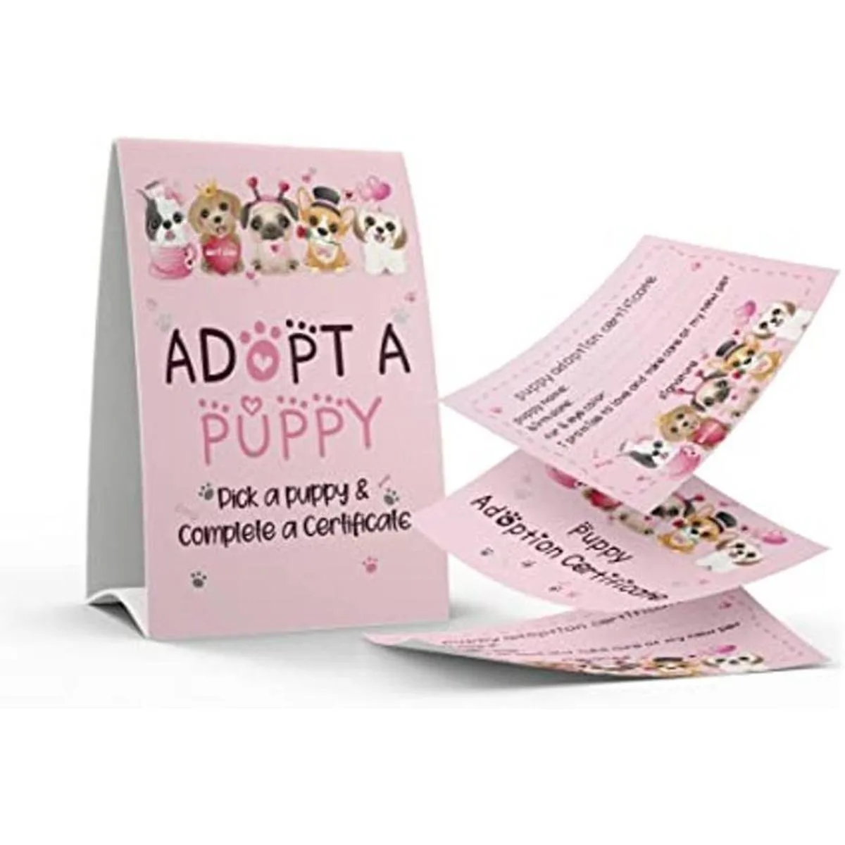 Juego de 1 letrero de adoptar un cachorro y 10 certificados de adopción de cachorros, adoptar una fiesta, fiesta de cumpleaños para niños, fiestas de aula035B
