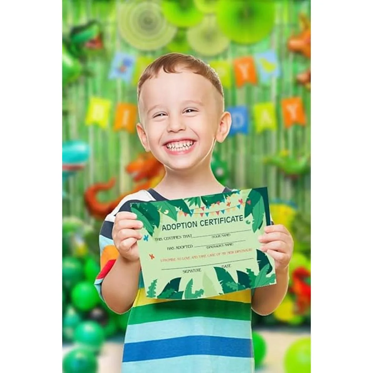 El logotipo perfecto de adopción de fiesta de cumpleaños de dinosaurio y certificado de adopción 1 letrero de adopción y 10 certificados de adopción, todos miden 5 x 7 pulgadas. Los carteles de adopción se pueden admitir de forma independiente.