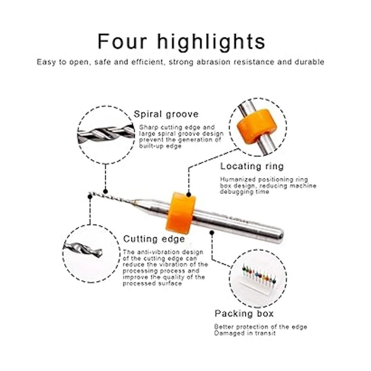 Alta calidad: las brocas PCB están hechas de acero de tungsteno de alta calidad, alta resistencia al desgaste, alta dureza, resistencia a la flexión, antideterioro, alta eficiencia de trabajo.