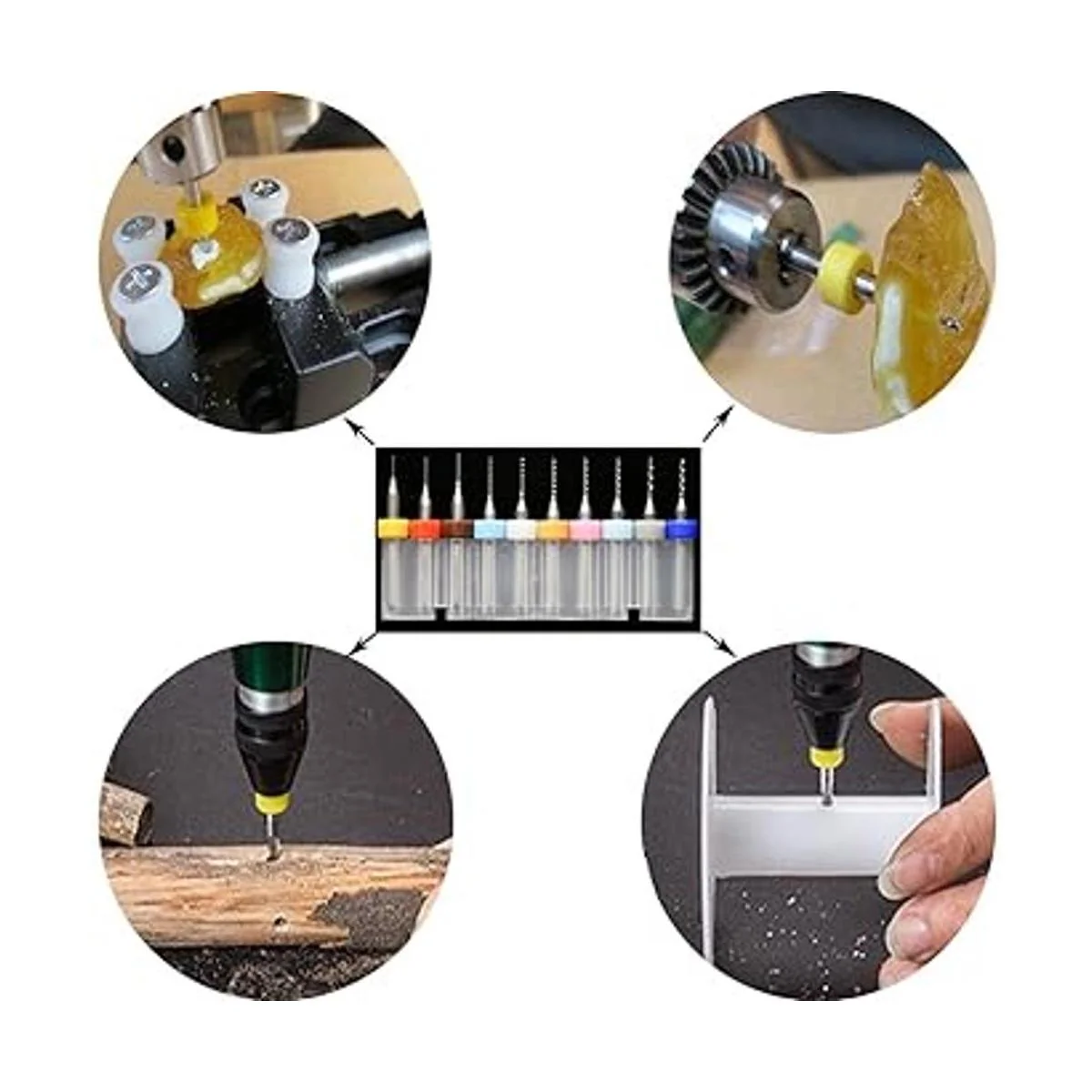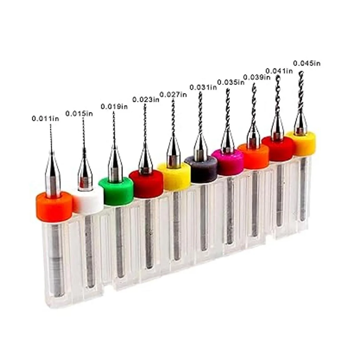Juego de 10 brocas de 0.012 in a 0.047 in, brocas de carburo micro CNC, juego de brocas PCB, mini brocas de 18 pulgadas para placa de circuito impresión, ámbar, cera de abejas, piedra áspera, Dremel, joyería