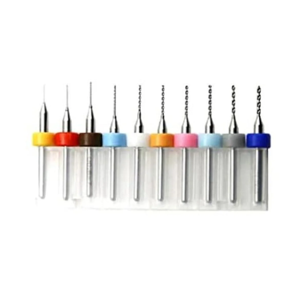 Juego de 10 brocas PCB. Diámetro del borde de corte: 0.012 in, 0.016 in, 0.020 in, 0.024 in, 0.028 in, 0.031 in, 0.035 in, 0.039 in, 0.043 in, 0.047 in