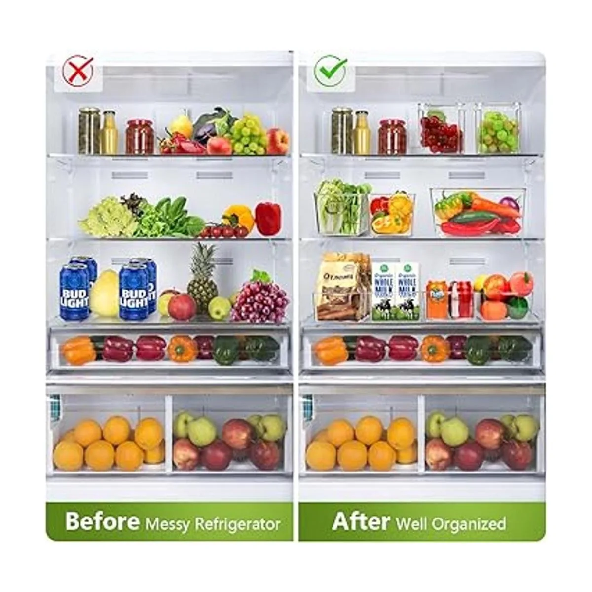 Diseño transparente: los contenedores organizadores de cocina para refrigerador son transparentes, por lo que puedes ver lo que quieres sin tener que sacar todo el contenedor de la nevera. Simplifica el almacenamiento de tu cocina y haz espacio para nuevo. Estamos dedicados a abordar cualquier problema del producto, si alguna vez tienes algún problema, simplemente ponte en contacto con nosotros para obtener ayuda o un reemplazo gratuito
