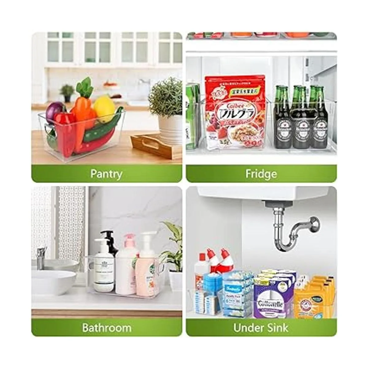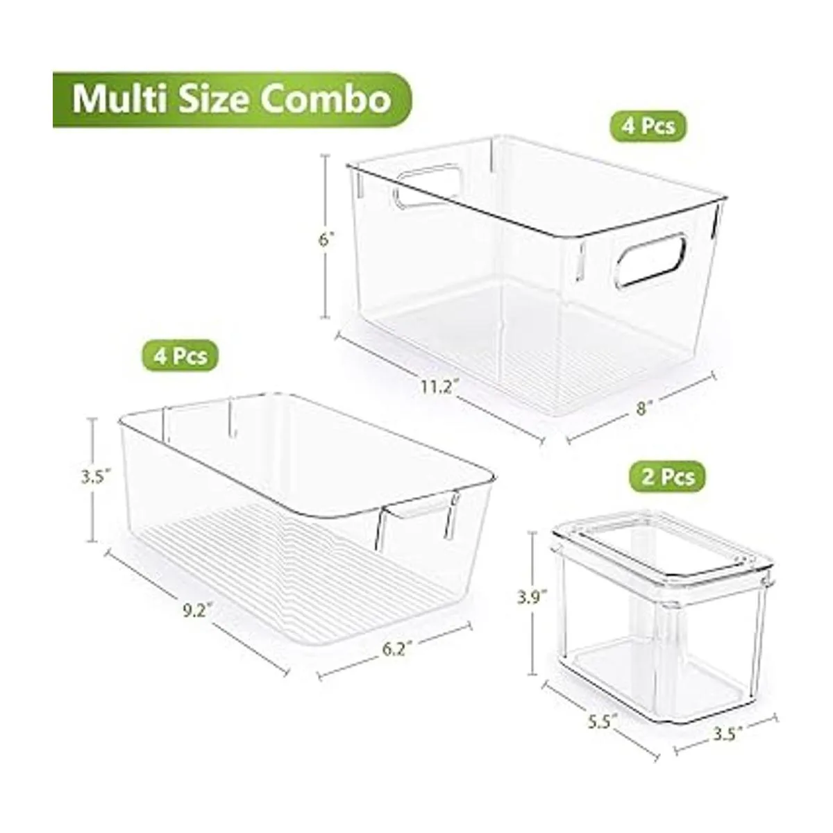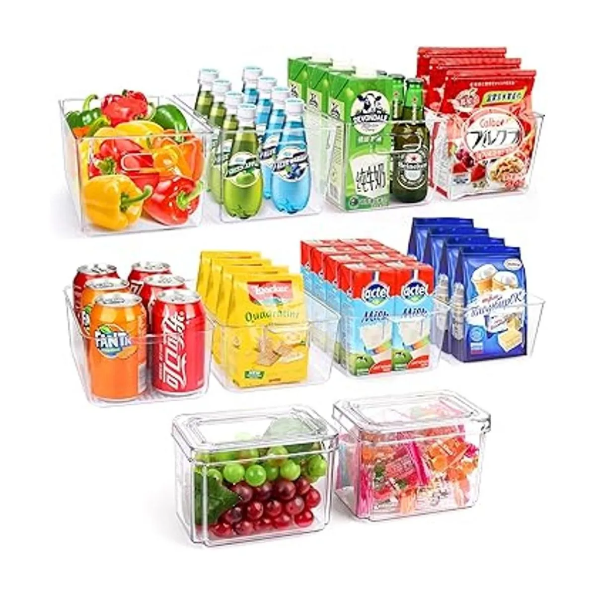 Juego de 10 contenedores organizadores de despensa de refrigerador, contenedores de plástico transparente para almacenamiento de alimentos para cocina, encimeras, armarios, nevera, congelador, dormitorios, baños, contenedores de almacenamiento de despensa de plástico transparente