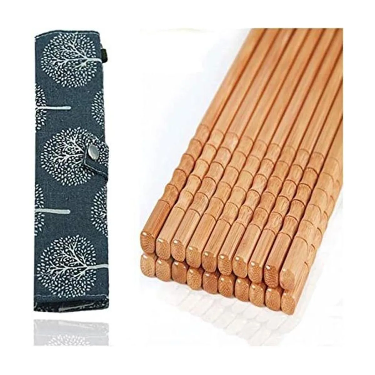 Juego de 10 pares de palillos de bambú reutilizables, palillos de viaje con funda, reutilizables, chinos, coreanos, japoneses, de bambú, portátiles, aptos para lavavajillas