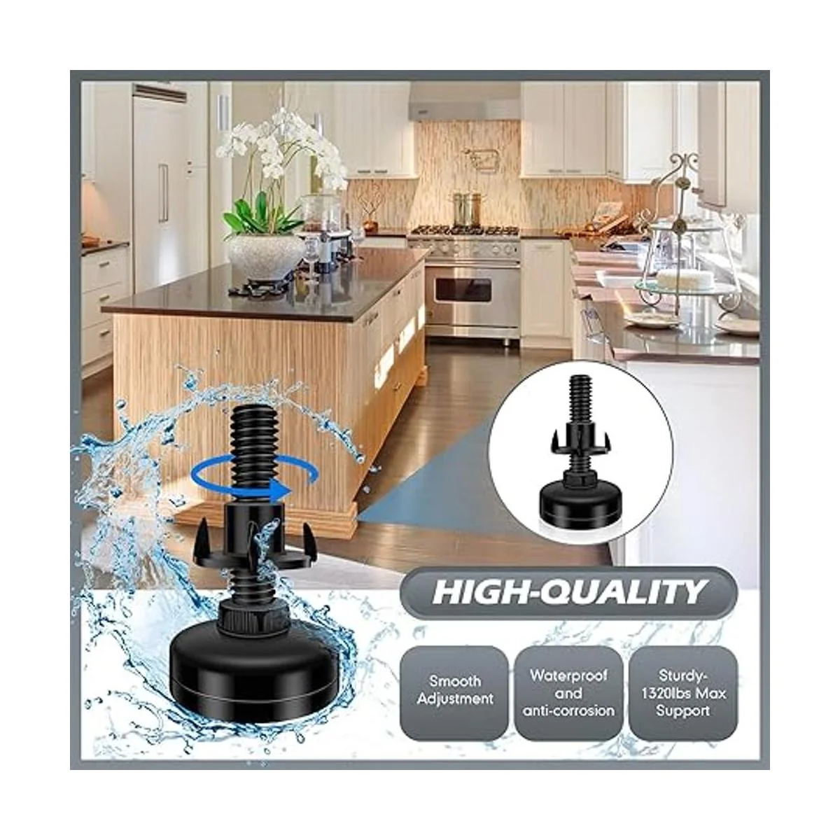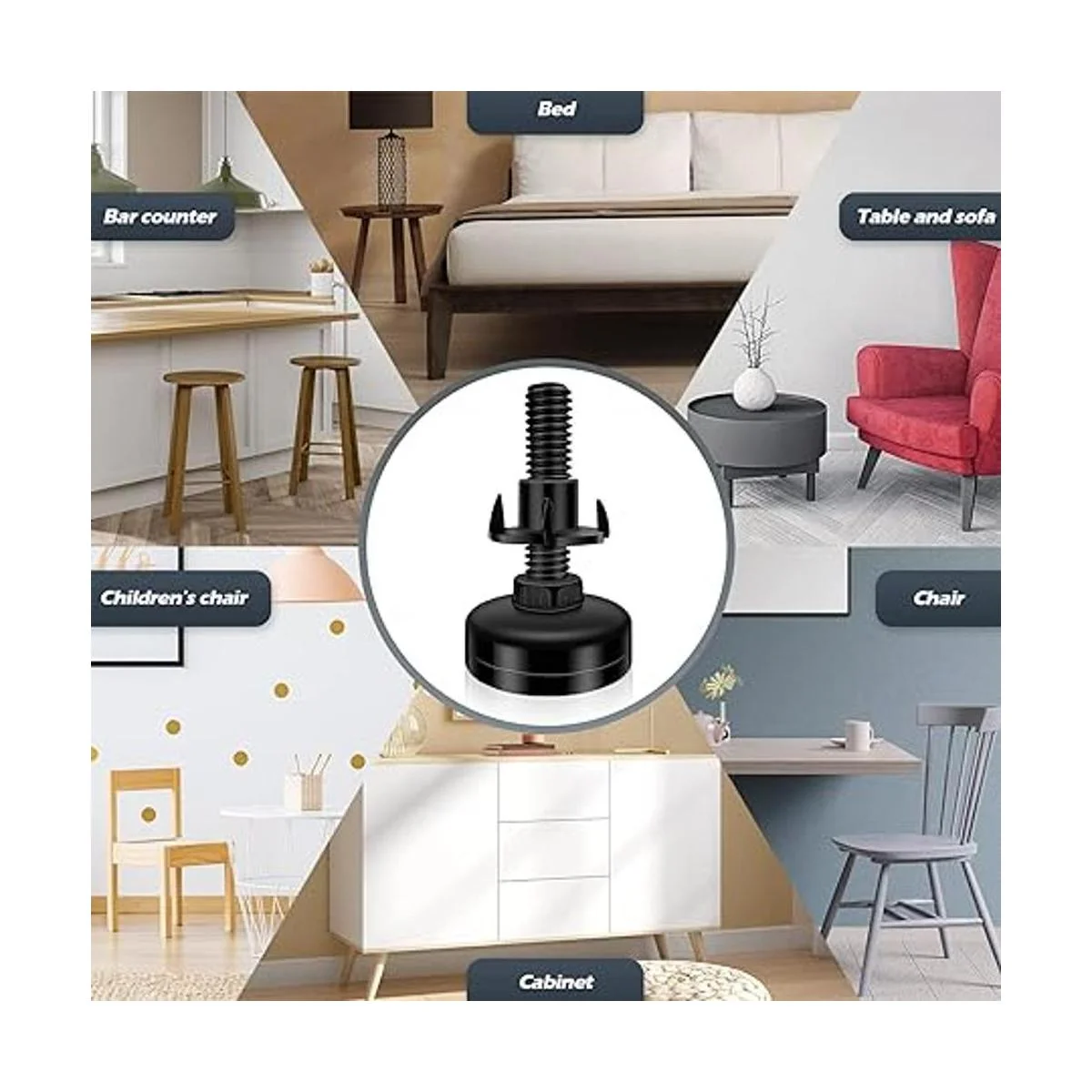 Diseño universal Nuestros niveladores de patas ajustables se pueden colocar en mesas, sillas, armarios de cocina, estantes de plantas, etc. No importa qué ayuda necesites en tu hogar o lugar de trabajo, nuestros niveladores de piernas son un método de reparación rápido sin afectar la apariencia