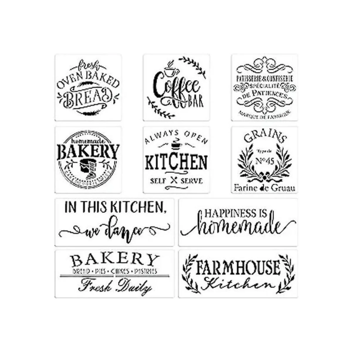 Juego de 10 plantillas de cocina de granja, carteles rústicos de panadería casera, plantillas de pintura para el hogar, comedor, decoración de pared, plantillas reutilizables, letrero de madera DIY