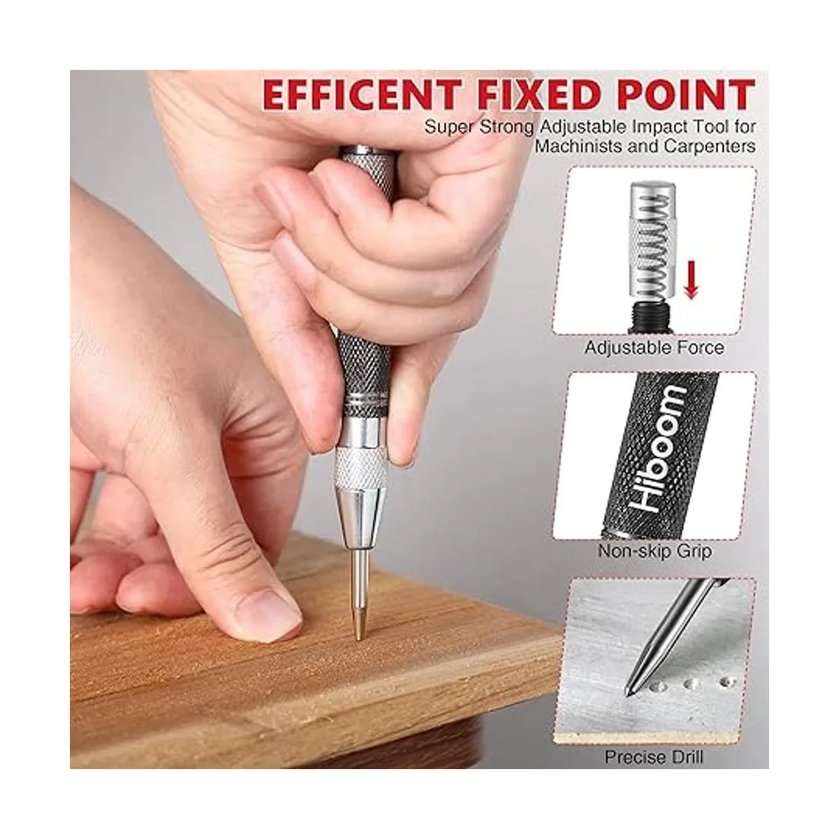 Perforadora central con resorte: el perforador de metal está hecho de cuerpo de acero cromado y superficie profundamente moleteada, lo que significa que no se desliza y ofrece un manejo y control más precisos; el tornillo de tensión ajustable te permite utilizar una mano para operar con poco esfuerzo, lo que puede marcar fácil y con precisión un lugar de centrado para taladrar agujeros