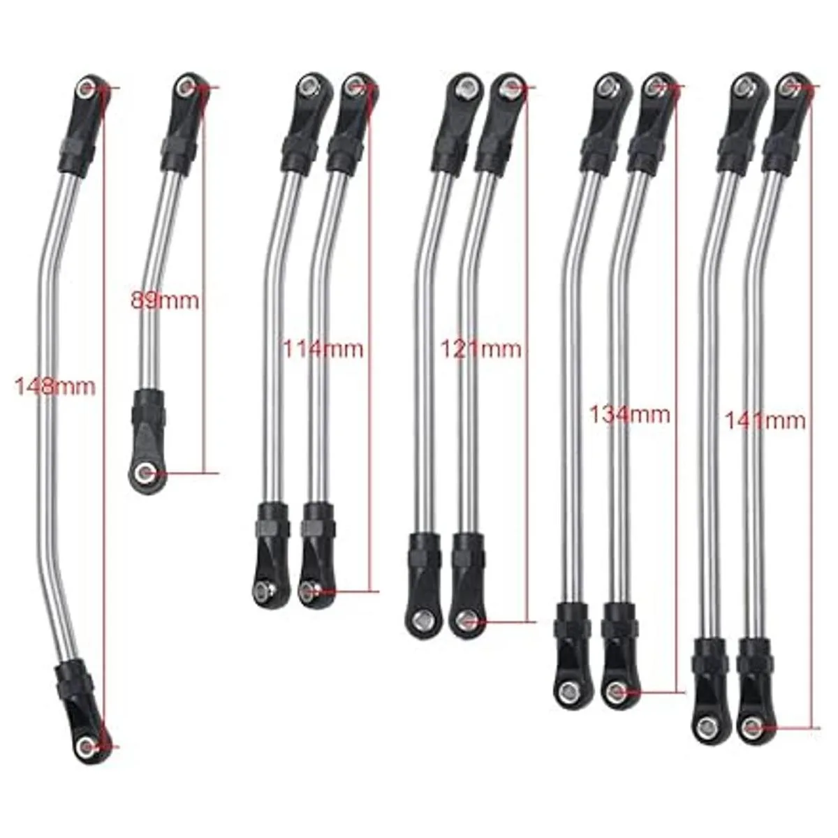 Juego de 10 varillas de eslabones de dirección de acero inoxidable para cadenas axiales SCX10