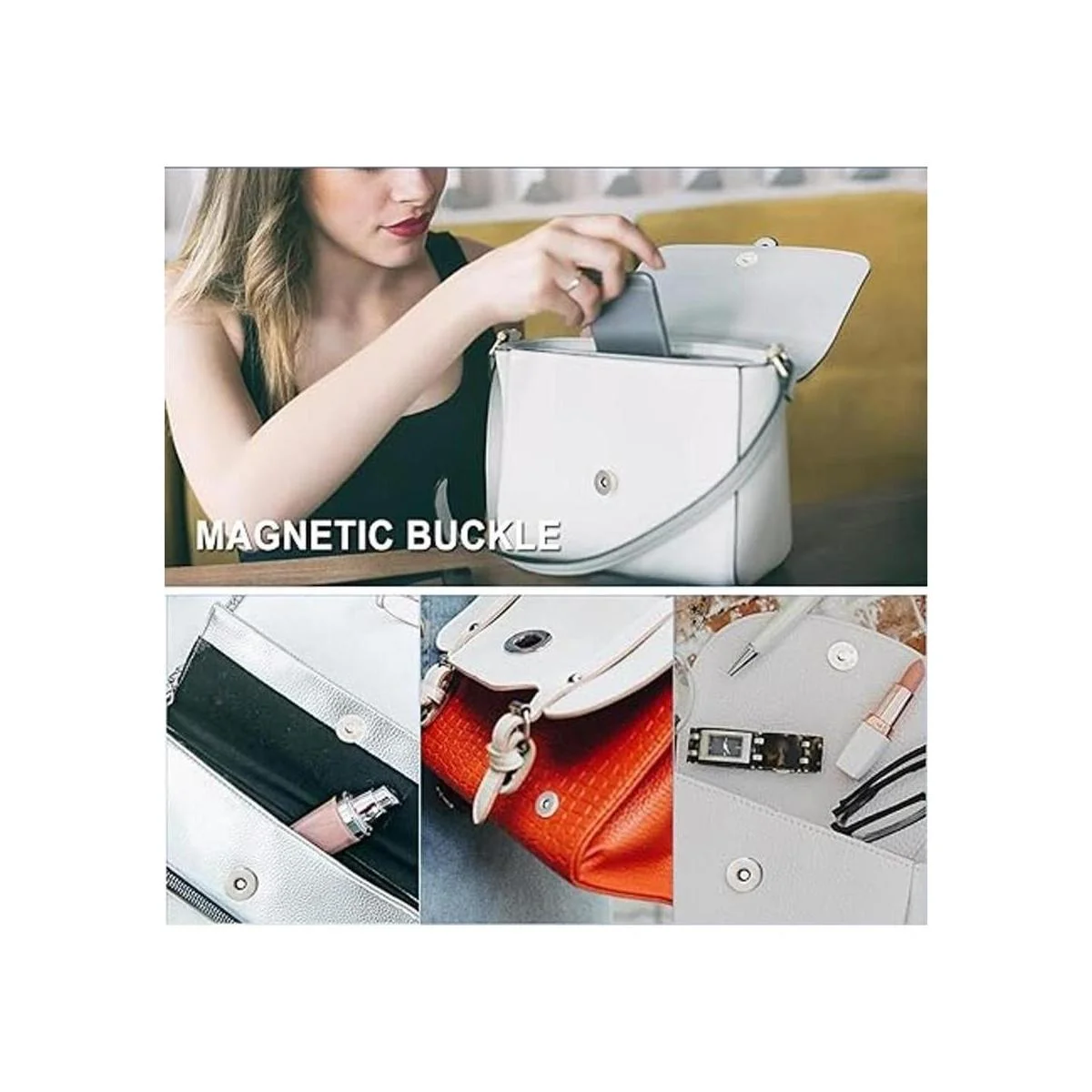 Material de calidad: nuestras hebillas magnéticas están hechas de hierro de alta calidad y materiales magnéticos. Los broches magnéticos para bolso son duraderos, ligeros y no se oxidan. La plata puede combinar con muchas cosas diferentes y se ve genial. Son la primera opción para accesorios de equipaje.