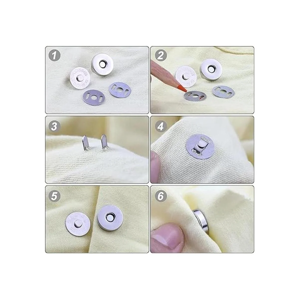 Fácil de colocar: presiona las puntas de metal a través de la tela y dóblalas firmemente. Las piezas de respaldo están incluidas. Puedes instalarlos donde quieras tener un cierre. Son muy fáciles de instalar, absolutamente infalibles.