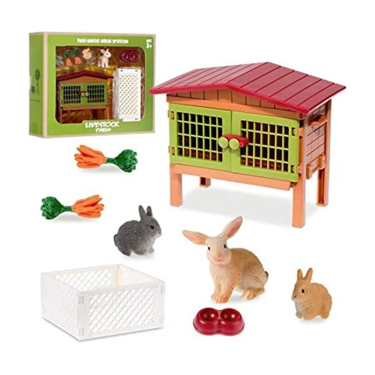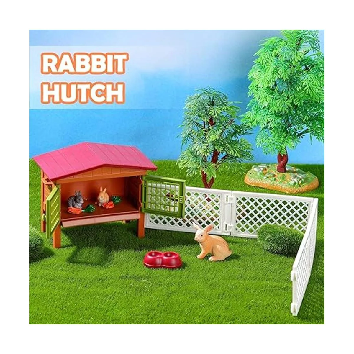 Juego de 11 piezas de granja World Bunny Hutch Bunny Toy Figuras de animales de granero, zanahoria, conejo, cabaña, casa de campo, juguetes para niños a partir de 3 años de edad, juguetes educativos de aprendizaje, regalo de cumpleaños