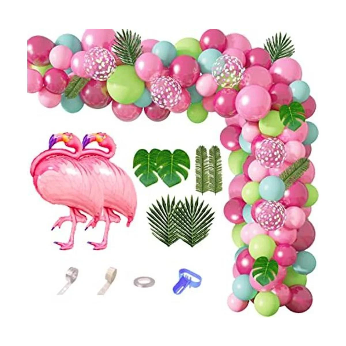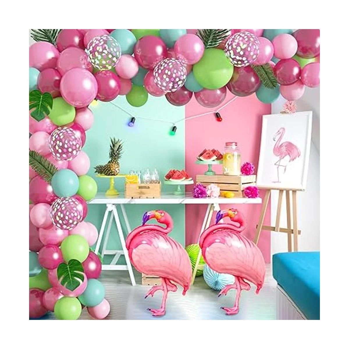Juego de 117 globos de flamenco, globos de flamenco de 40 pulgadas, globos tropicales de confeti de color rosa intenso, hojas de palma para Hawaii Luau Aloha, fiesta de cumpleaños de flamenco, baby shower, decoraciones de boda