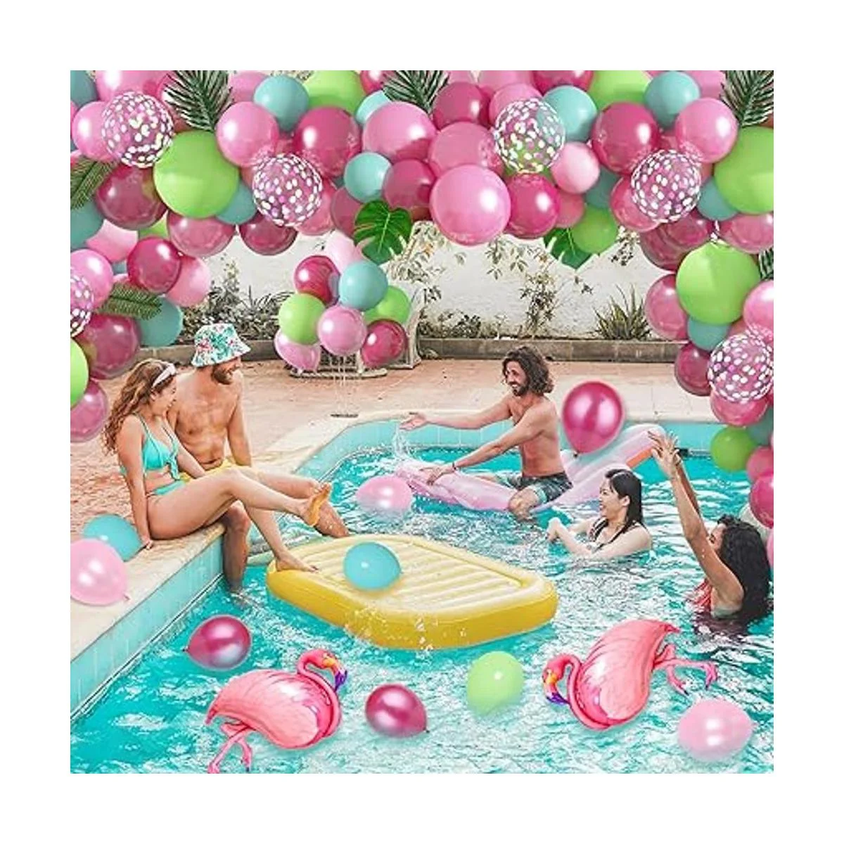 Múltiples aplicaciones: nuestras decoraciones de fiesta de Hawái vienen con globos coloridos para combinar si estás planeando decoraciones de fiestas tropicales, decoraciones de fiesta de princesa, fiesta de flamencos, fiesta temática tropical de Hawaii, fiesta de aloha o baby shower, boda, cualquier evento de verano. No puedes equivocarte con estas decoraciones tropicales de fiesta luau.