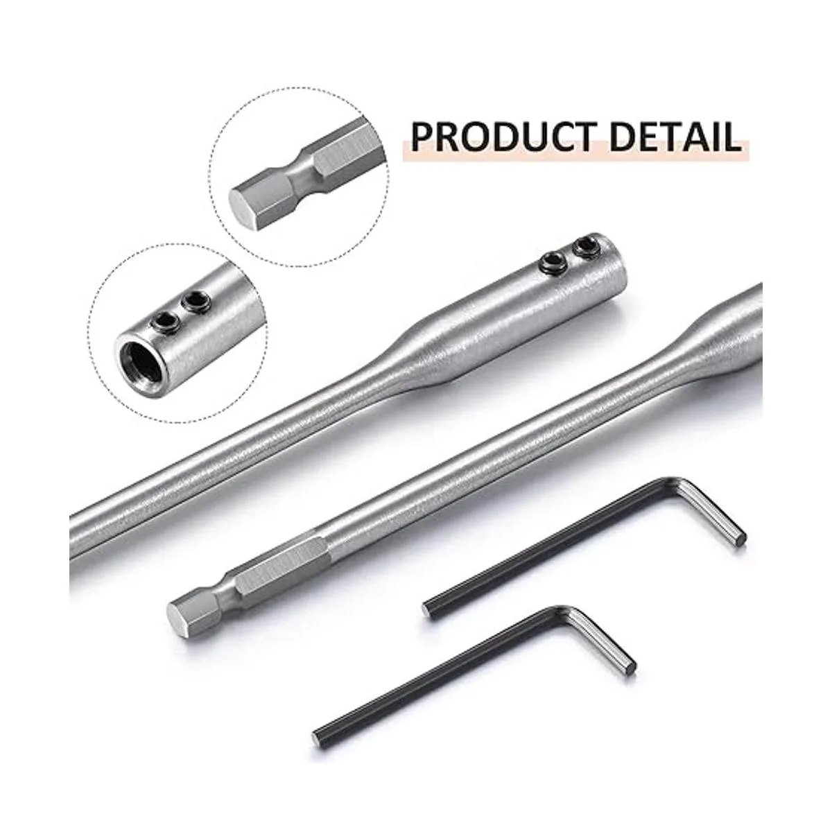 Resistente y duradero: estos extensores de brocas y llaves están hechos de material de acero de alto carbono, que es resistente y fiable de usar, con buena durabilidad y difícil de deformar, no se dobla ni rompe fácilmente, resistente al óxido y a la erosión, adecuado para su uso con brocas de pala de madera