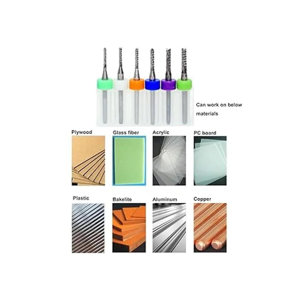 Uso amplio: estas fresas CNC se utilizan principalmente para cortar y grabar y funcionan perfectamente en acrílico, PVC, nailon, resina, placa de circuito PCB. no usar en material demasiado duro, como hierro de alta dureza.