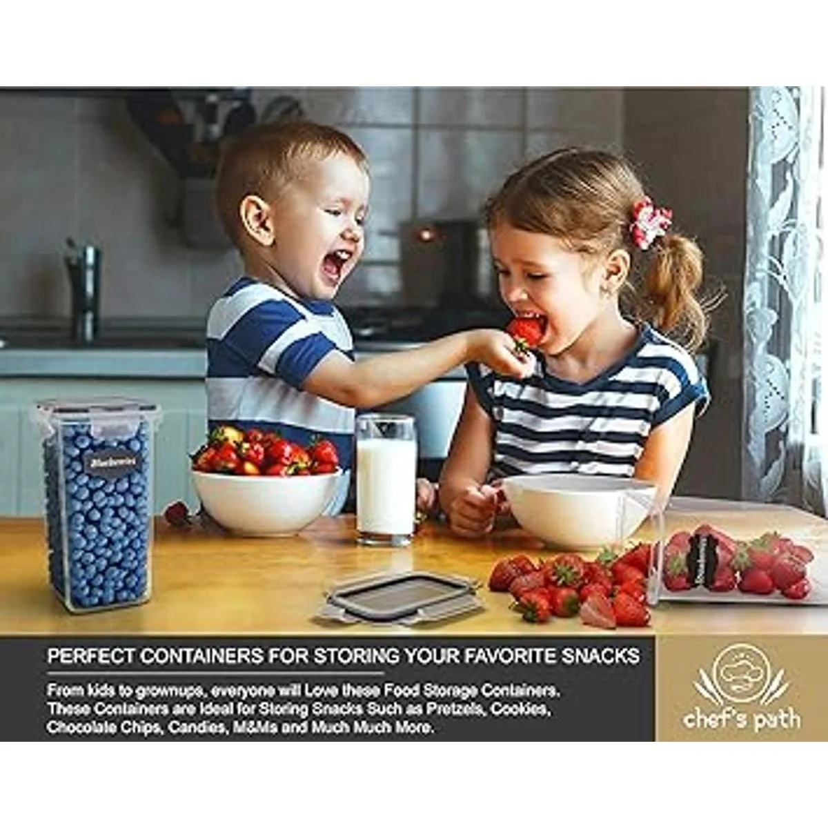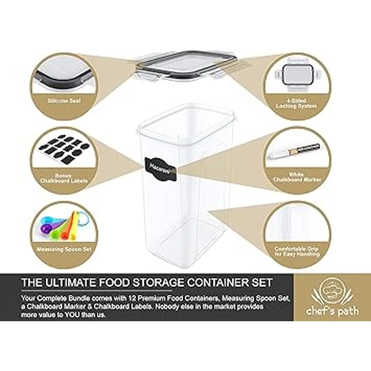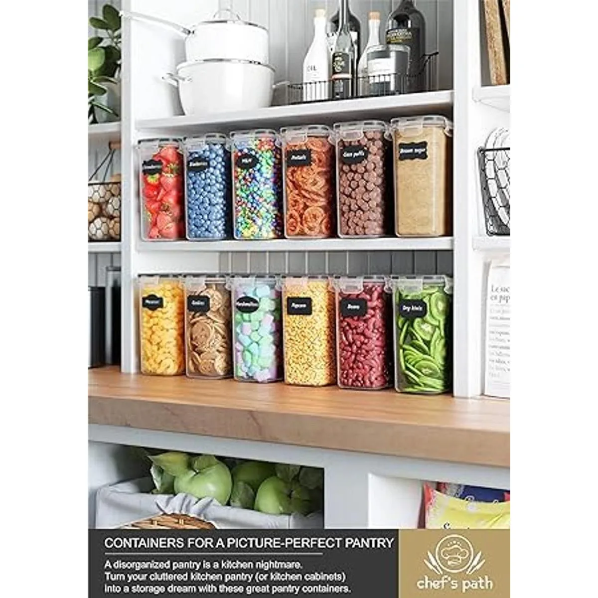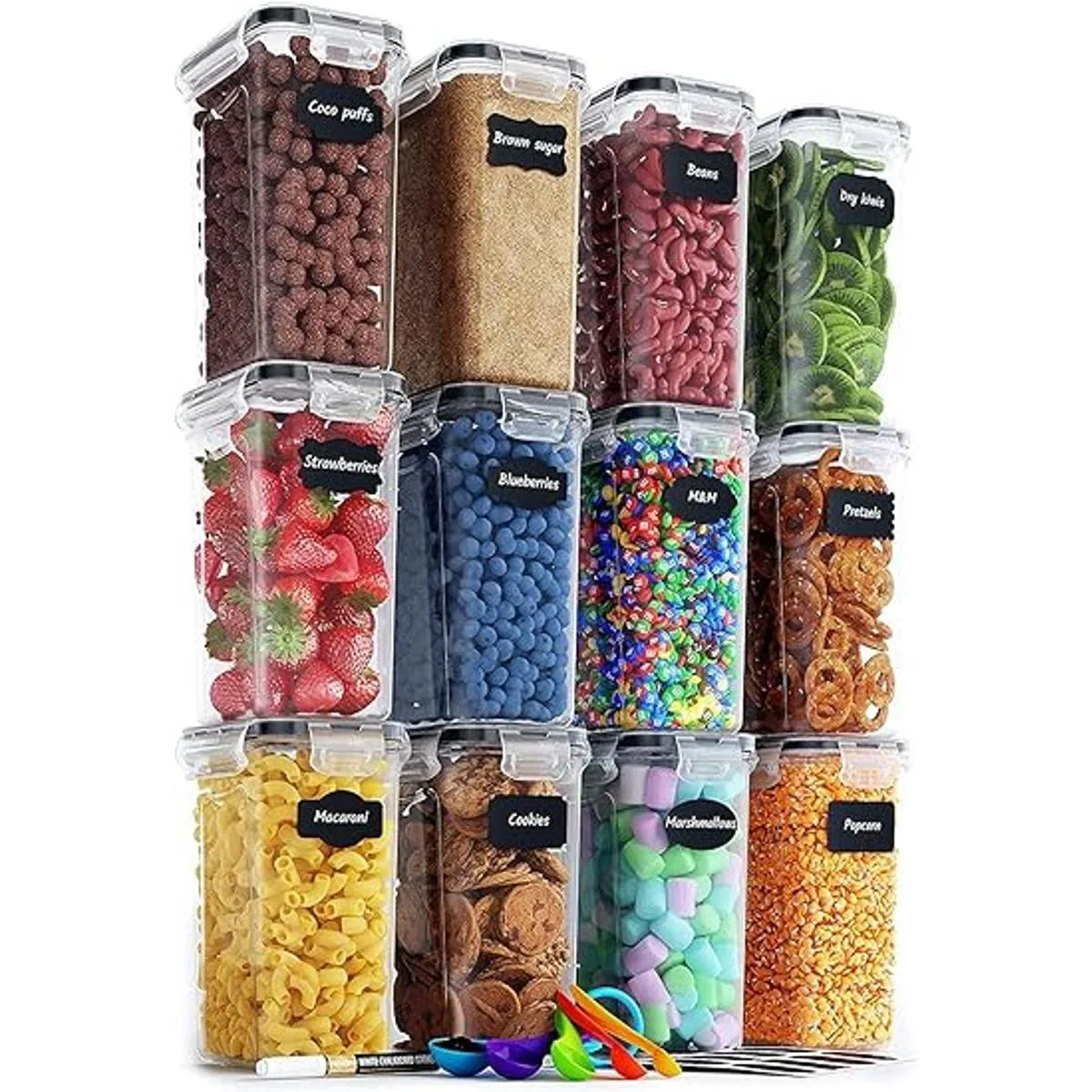 Paquete superior: nuestros recipientes para organizar la despensa vienen con 12 recipientes de almacenamiento de alimentos sin BPA, cuchara medidora, marcador de pizarra y etiquetas reutilizables que garantizan una excelente organización de la cocina. Este juego viene en una bonita caja, por lo que es un regalo ideal.