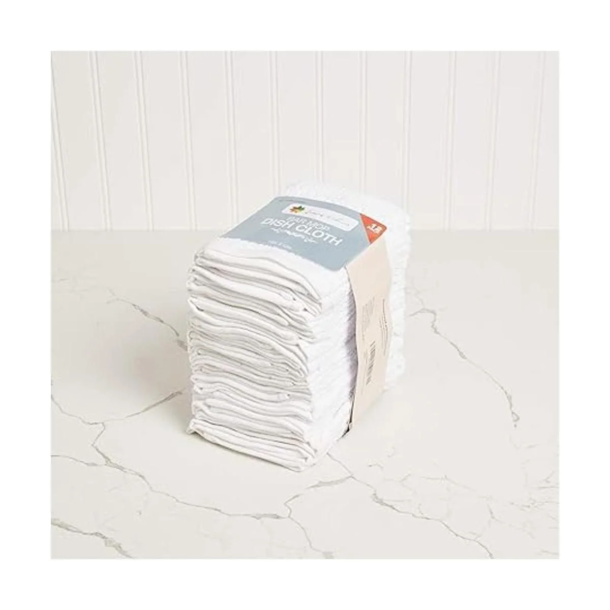 Juego de 12 paños de cocina para limpieza de trapeador de bar, 100% algodón, lavables a máquina, para uso diario, cocina, cocina, básica, trapeador, color blanco