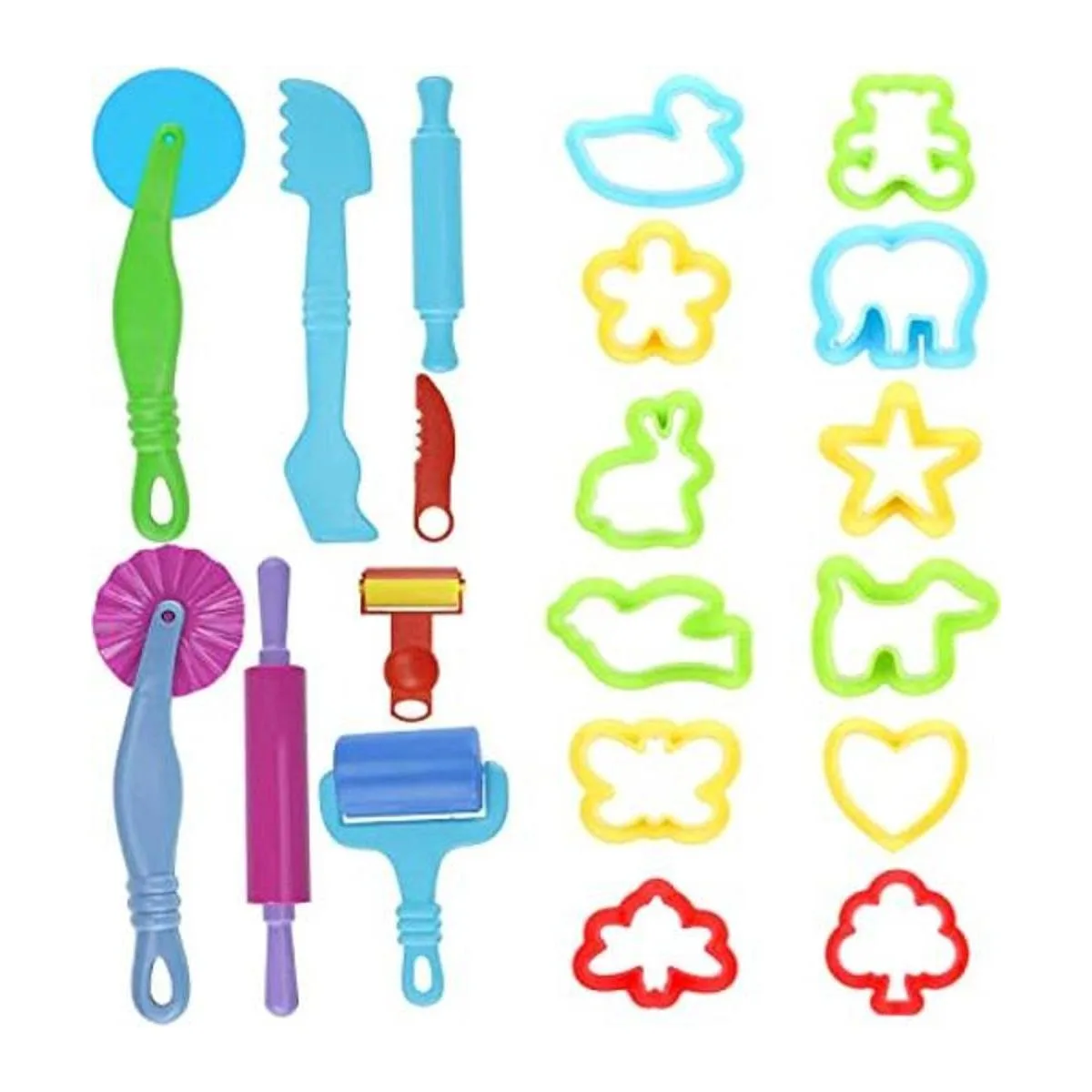 Dough Tools Kit: 20 pieces in one set Shape cutouts and Dough Tools. All of them are assorted color.