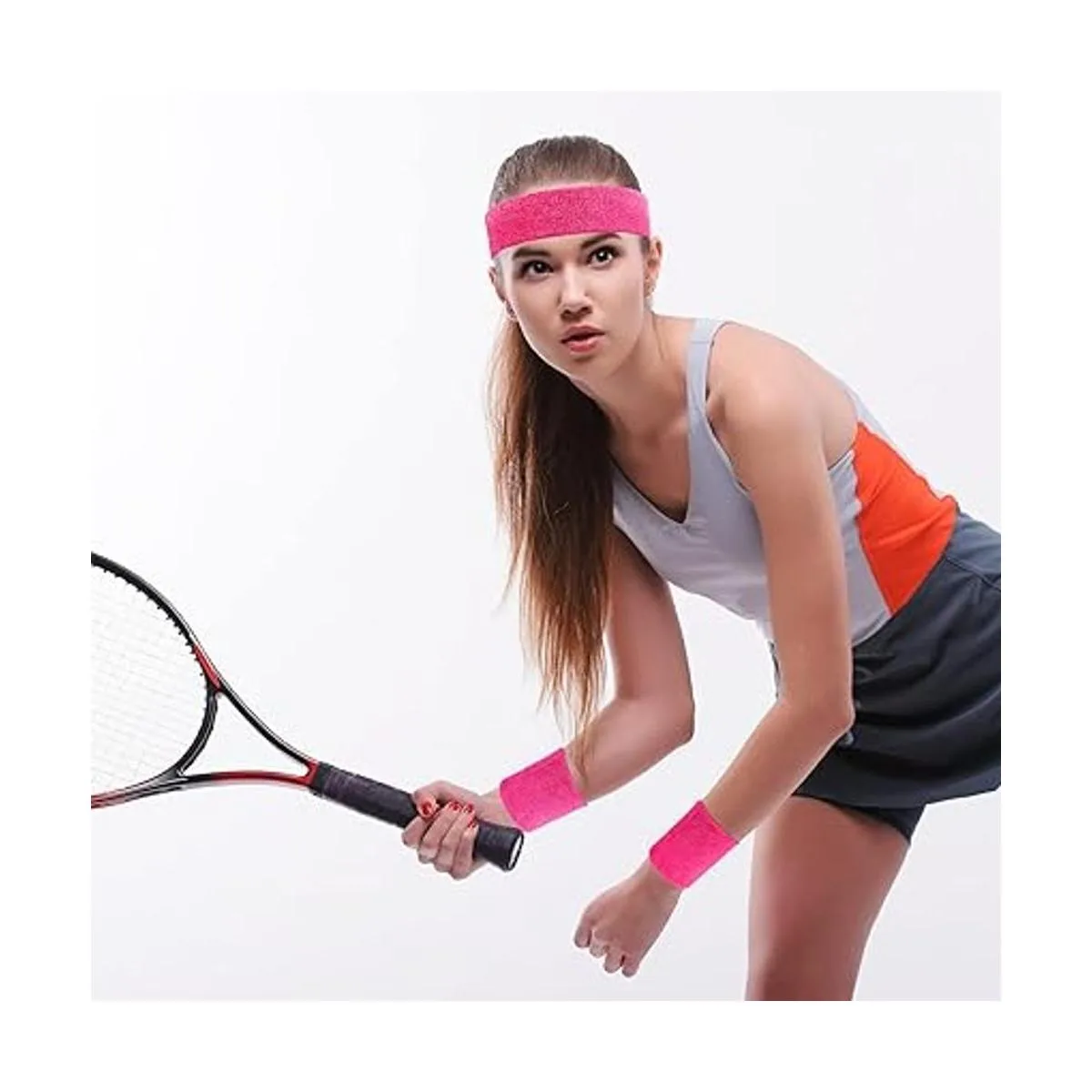 Juego de 12 pulseras y banda para el sudor, absorbente, antideslizante, elástica, de algodón, para el sudor, para baloncesto, tenis, gimnasio