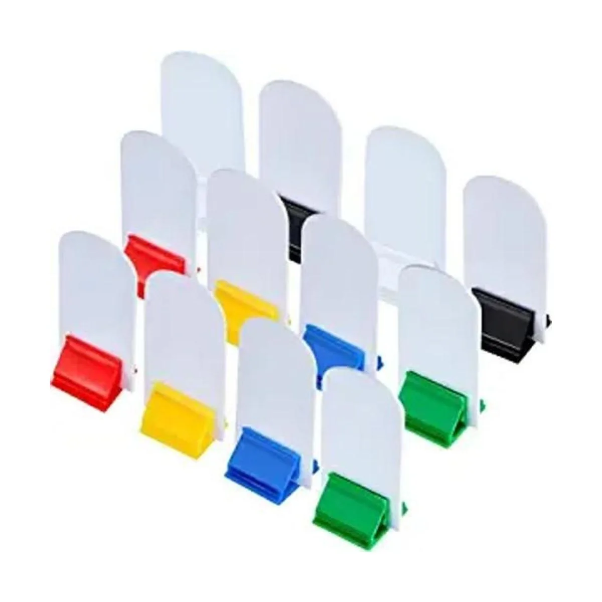 El paquete incluye: 12 soportes cuadrados de plástico multicolor en colores brillantes, como rojo, amarillo, verde, azul, blanco y negro, junto con 12 rotuladores de tablero de juego, 12 juegos en total, suficiente para satisfacer tus necesidades.