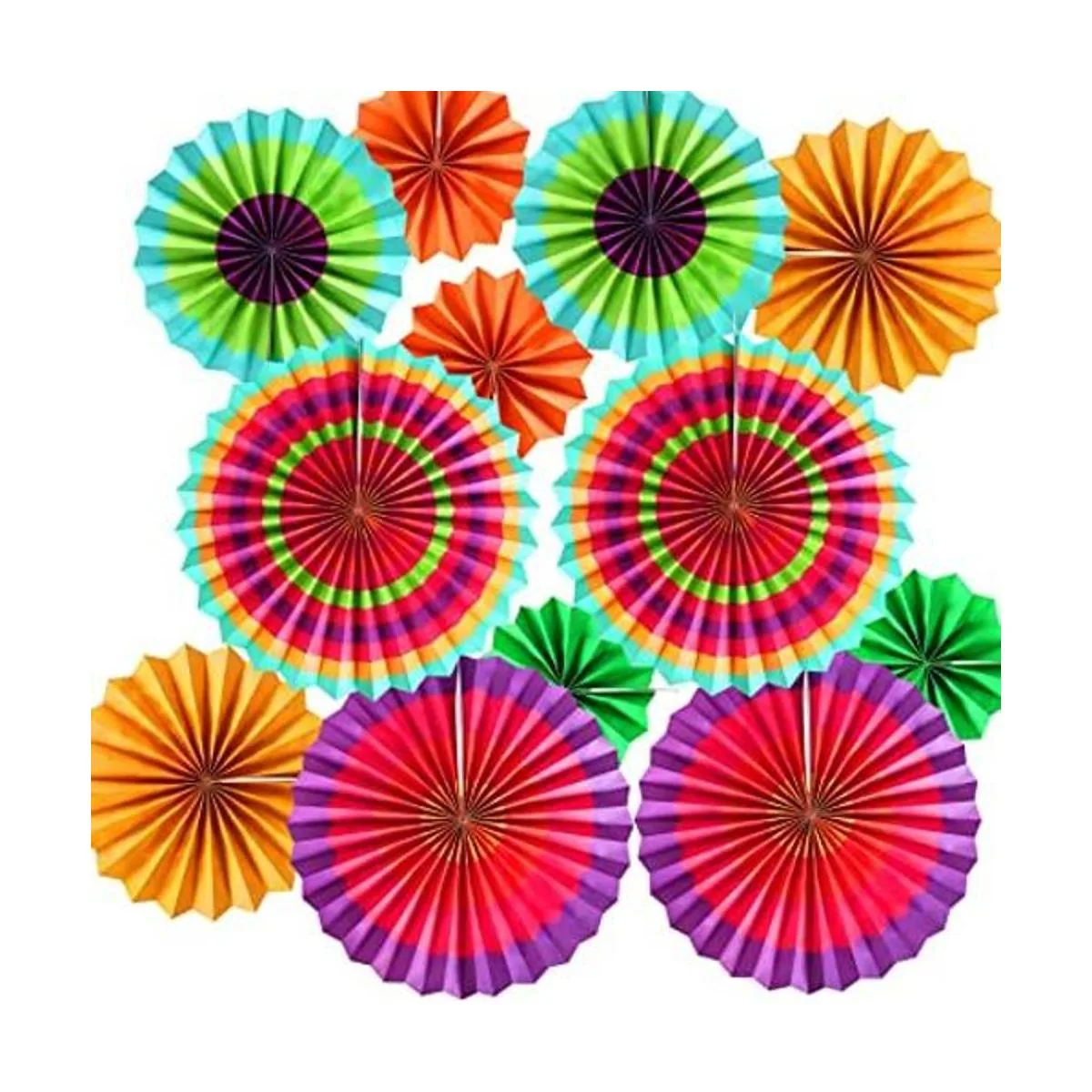 Juego de 12 vibrantes abanicos de papel para colgar, rosetas, decoraciones de fiesta, suministros de fotos, accesorios para el Cinco De Mayo, carnaval, fiesta de niños, cumpleaños, baby shower, multicolor