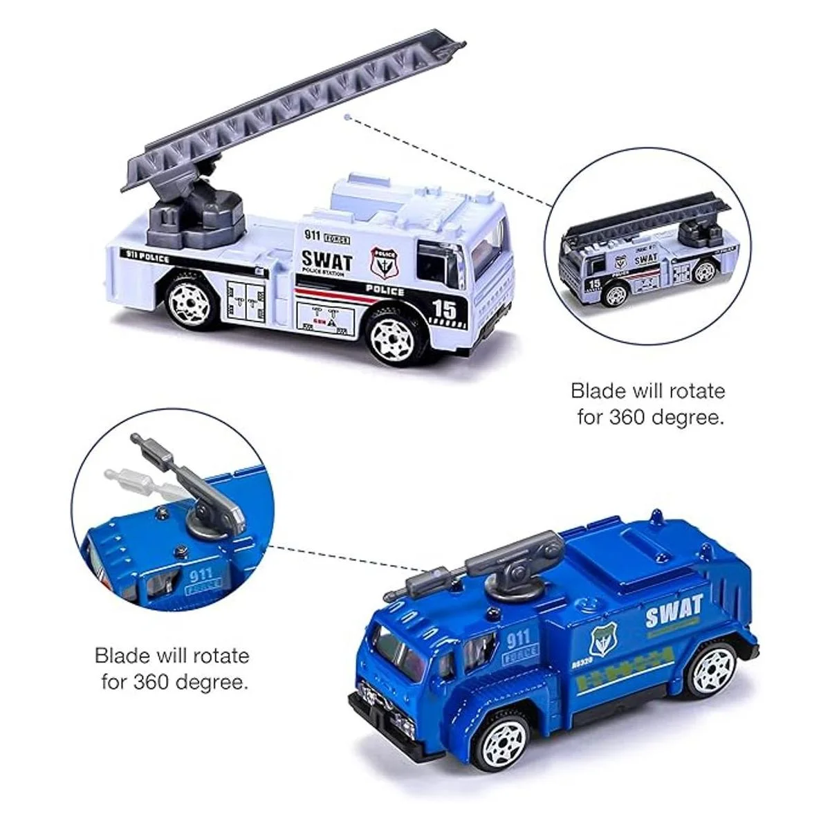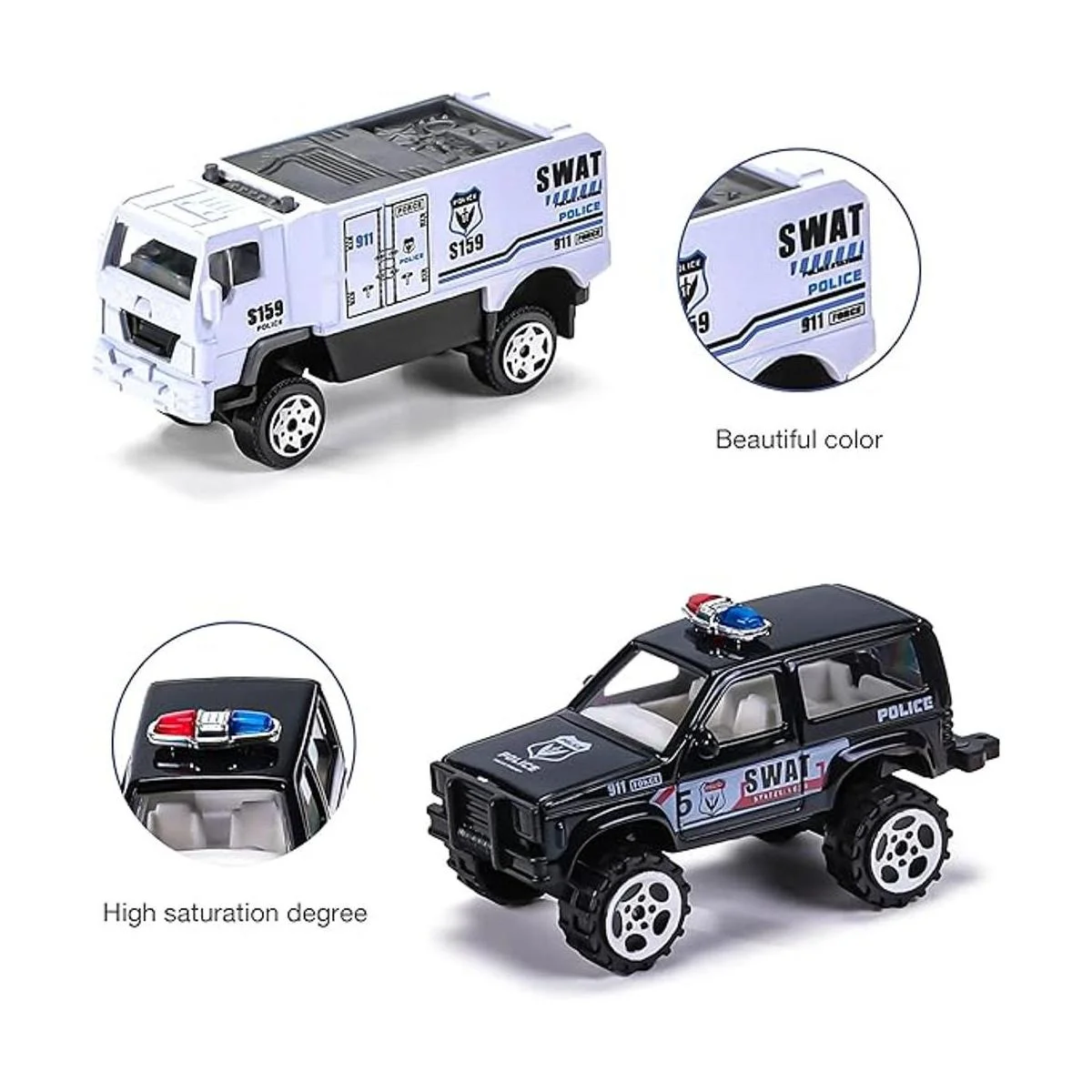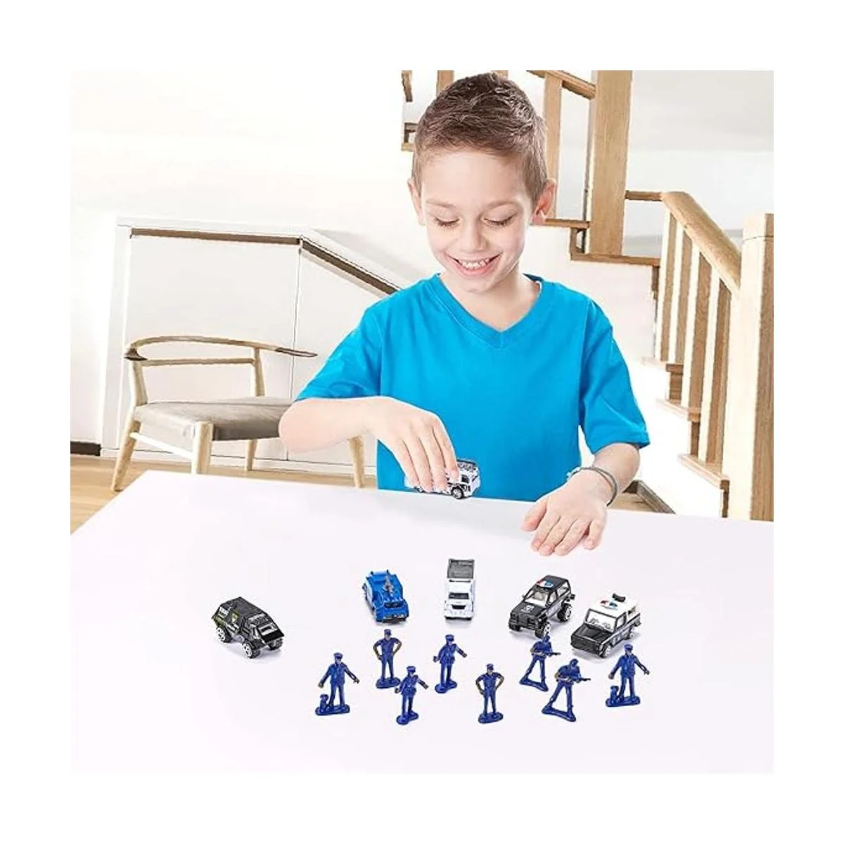 Camión de rescate de policía: 6 mini camiones de rescate de policía surtidos con 8 policías. Los coches de juguete detallados crean un mundo mágico para los niños.