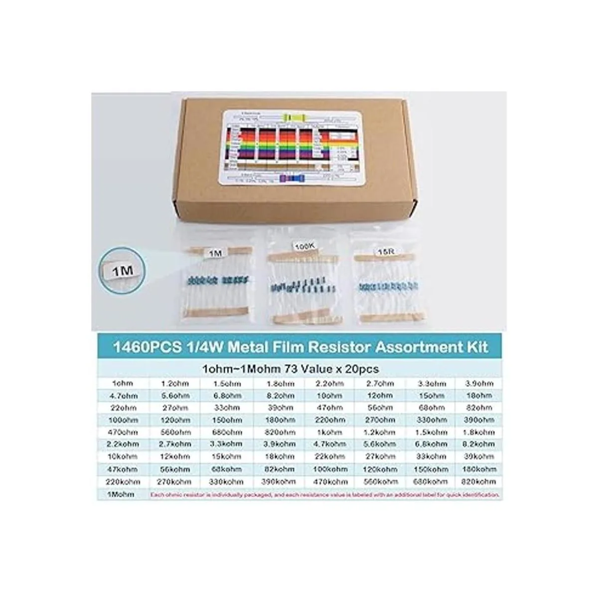 Juego de 1460 piezas de 14 W 73 valores 1 de película de metal de precisión surtido de resistencia electrónica 1ohm1Mohm Geekstory