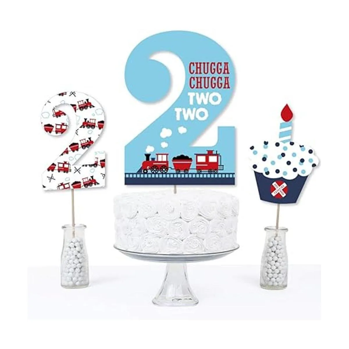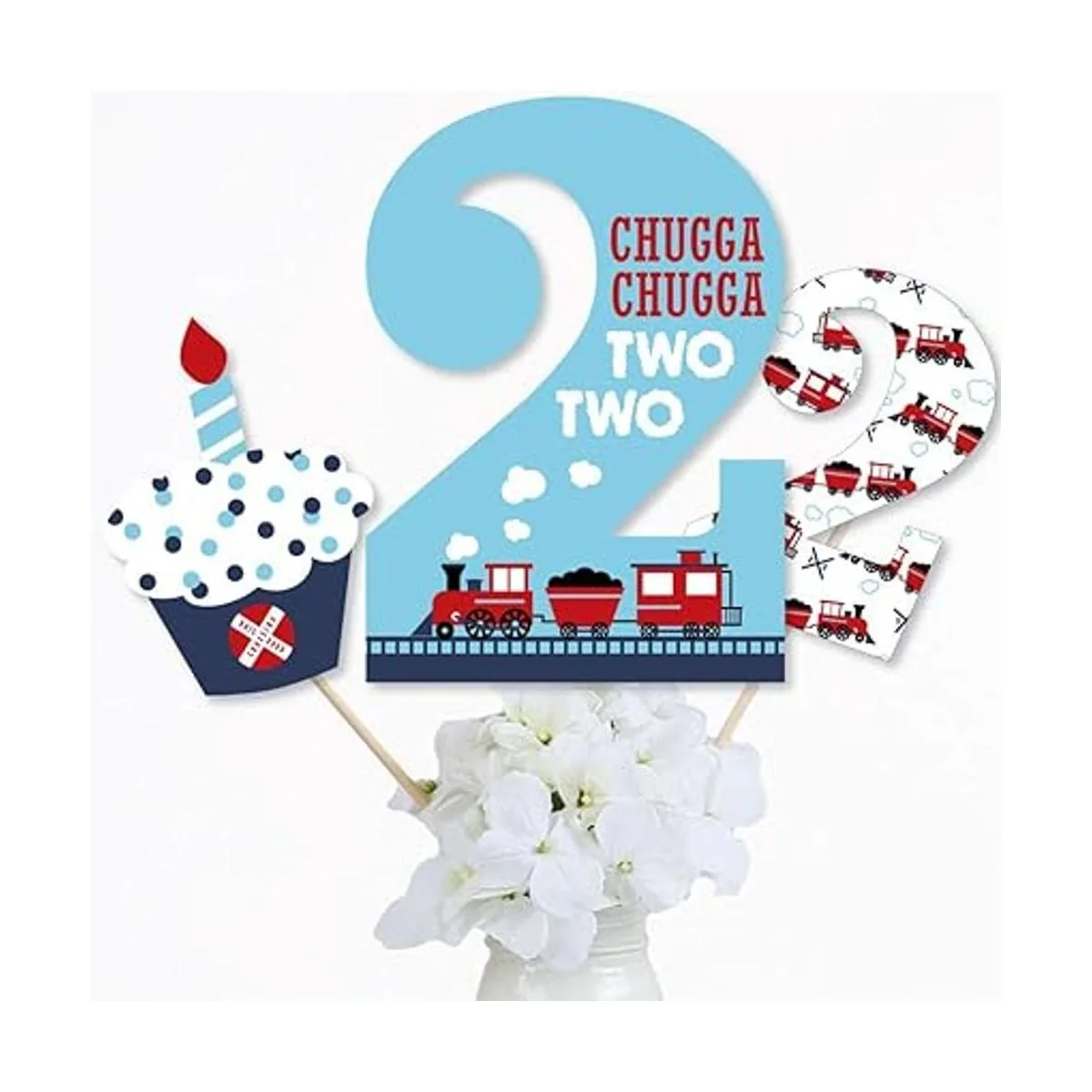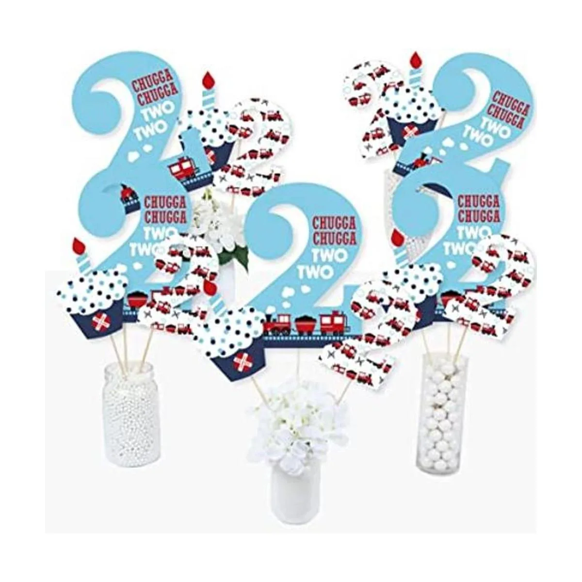 Juego de 15 palillos de centro de mesa para fiesta de 2 cumpleaños, diseño de tren de vapor
