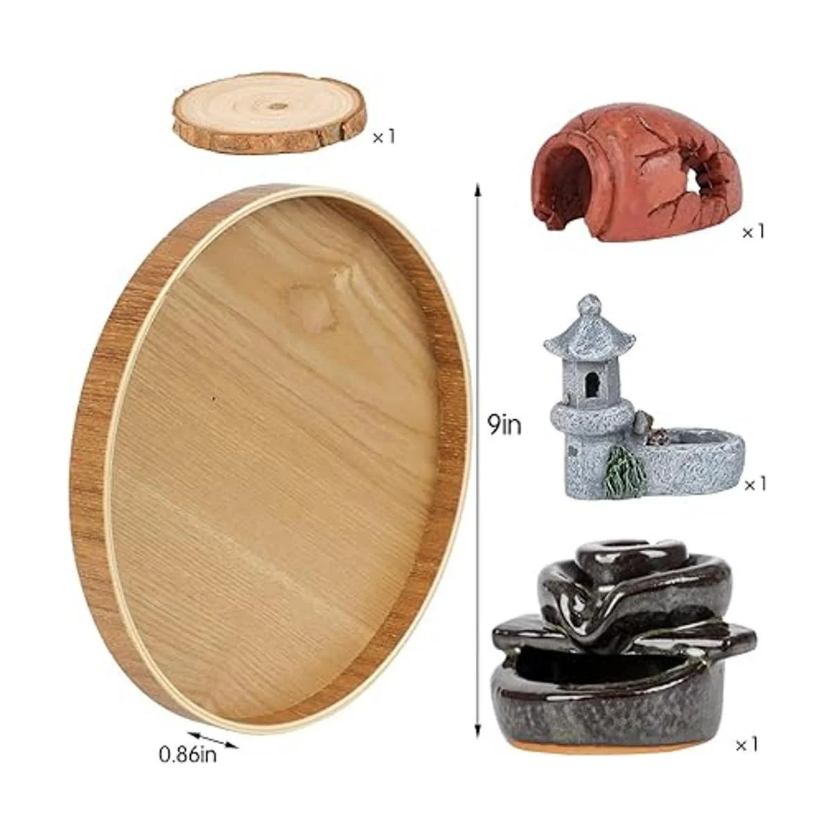 Juego de varias piezas: viene con una bandeja, arena, 4 pequeñas rocas, planta de loto, jarrón roto, rastrillo, incienso, soporte de incienso, 5 accesorios Zen miniatura y herramientas para crear tu propio jardín zen de meditación.