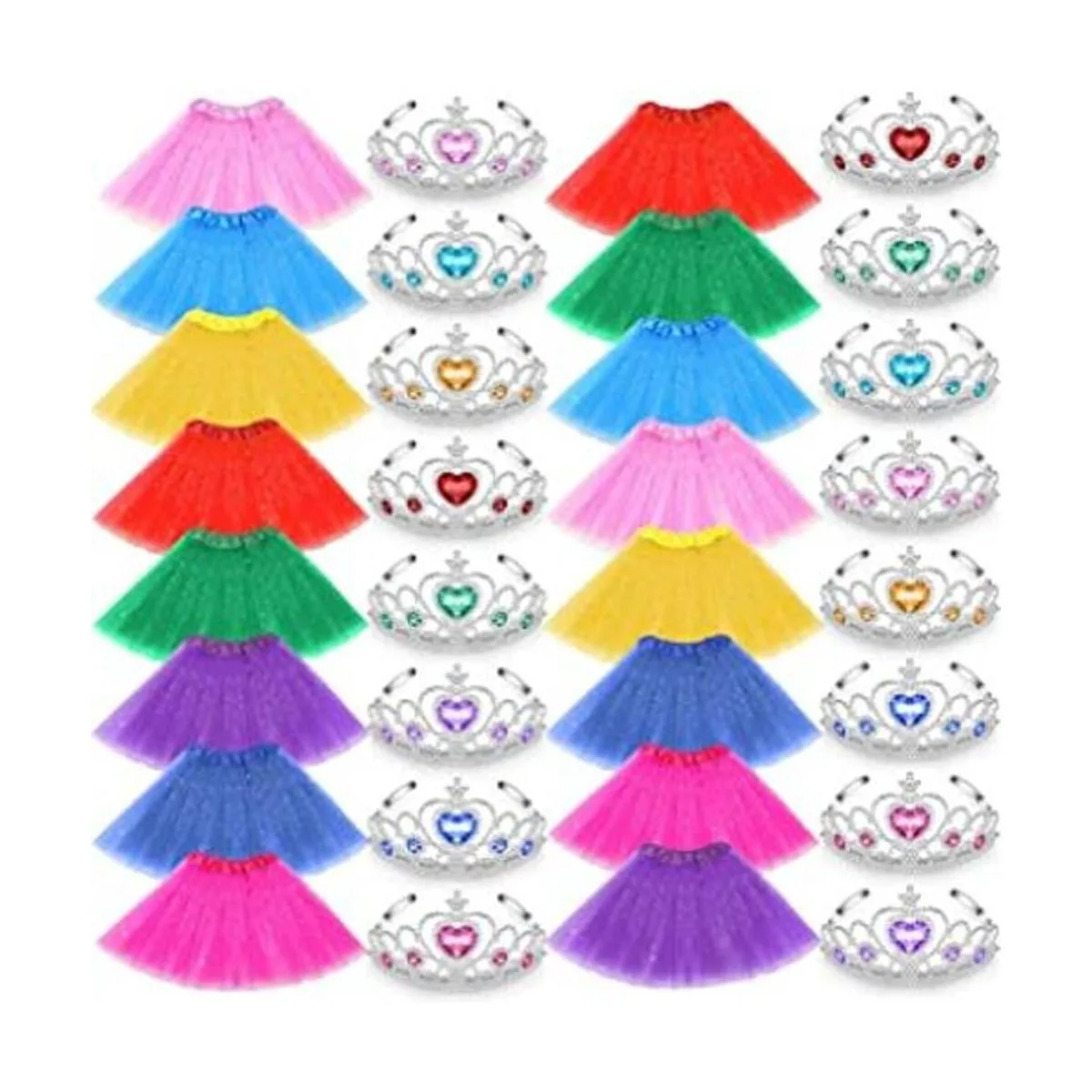 Juego de 16 accesorios de vestir con corona de tutú de princesa, tiara, coronas de princesa y tiara, faldas tutú de ballet para niña, disfraz de fiesta de cumpleaños